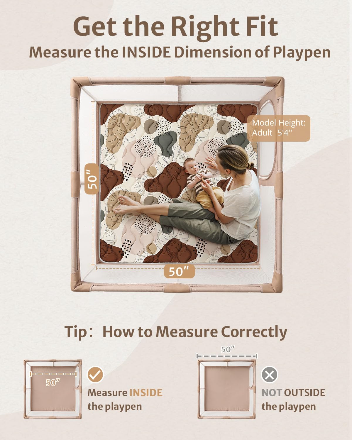 • Perfect Fit & Versatile Use – Measuring 50×50 inches, this mat fits playpens with the same INSIDE dimensions. Also great for tents or indoor/outdoor play. Please measure your space or playpen for a proper fit. More sizes available for your need