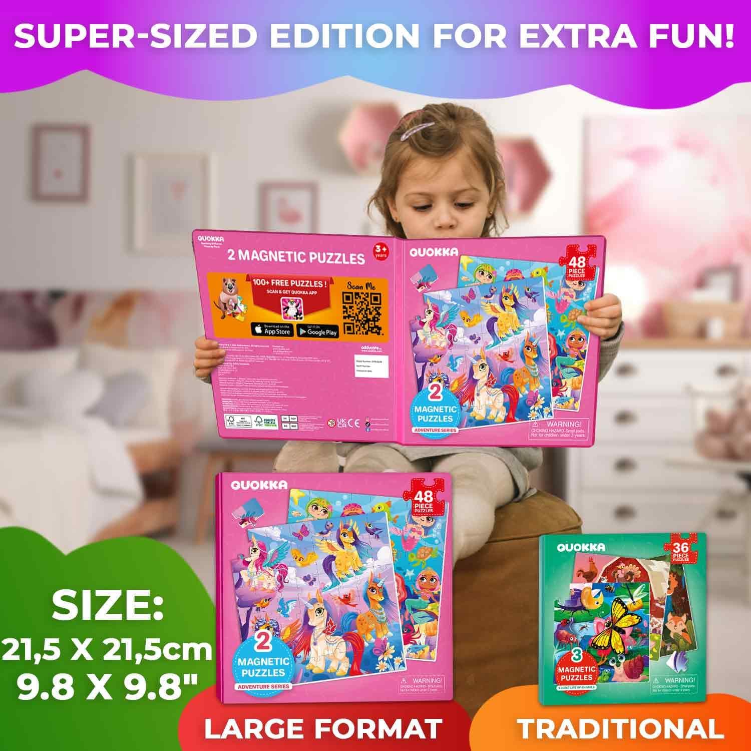 QUOKKA Magnetic Puzzles for Kids Ages 4-6 - 2x48 Travel Puzzle Games for Toddlers 3-5 Years Old - Car Activities Toy for Boys and Girls 2-4 yo - Unicorns & Mermaid Learning Magnet for Road Trip