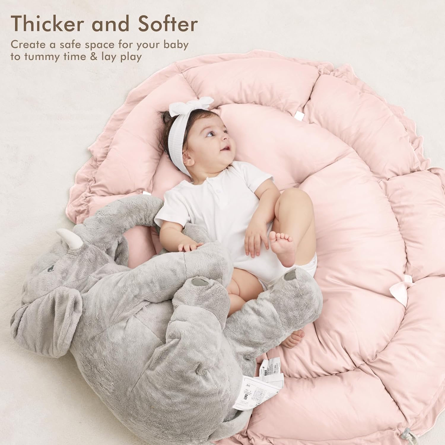 • THICKER & SOFTER: The reversible play mat crafted from premium plush material, offers a fantastic amount of cushion. Its neutral color scheme blends in with your home’s aesthetic so you can keep it out even after playtime is over.