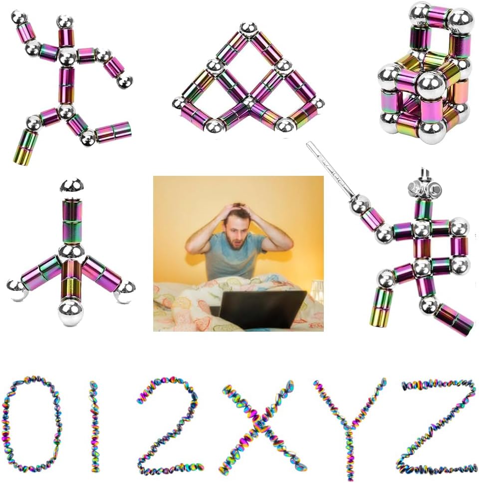 • 【Magnet toys】: This fidget toy set made in of high-quality metal, odorless and non-toxic, durable and long-lasting. (This magnetic pen) The shape can be changed as needed, like Swords, robots, monsters, etc. (This magnet beads) Fill your hand up with the ferrite putty. Mash them, shape them, stack them, and feel pressure slip away as the stones slip past your fingers. It's a great toy to pass the time.