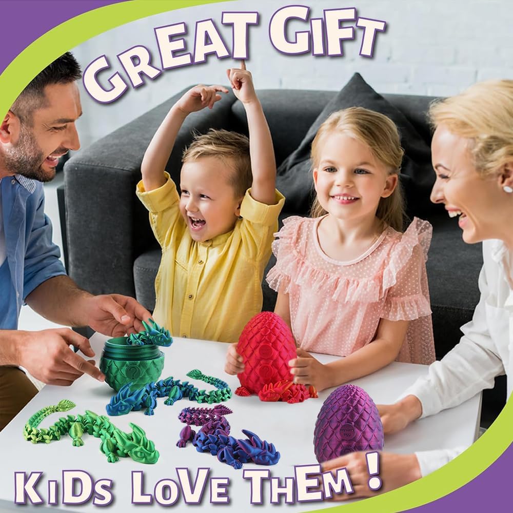 • 【Collections and Gifts】- Dragon fidget toys are exciting gifts that people of all ages love, regardless of age or gender. You can give it to your father, husband, brother, boyfriend, best friends and children. This is an easy and great gift idea for any occasion like Birthday, Christmas, Thanksgiving, Easter, New Years or any other party/event. If you're a lover of dragon fidget toys, these exquisite 3d printed dragon and egg are for you, and they are a perfect collection.