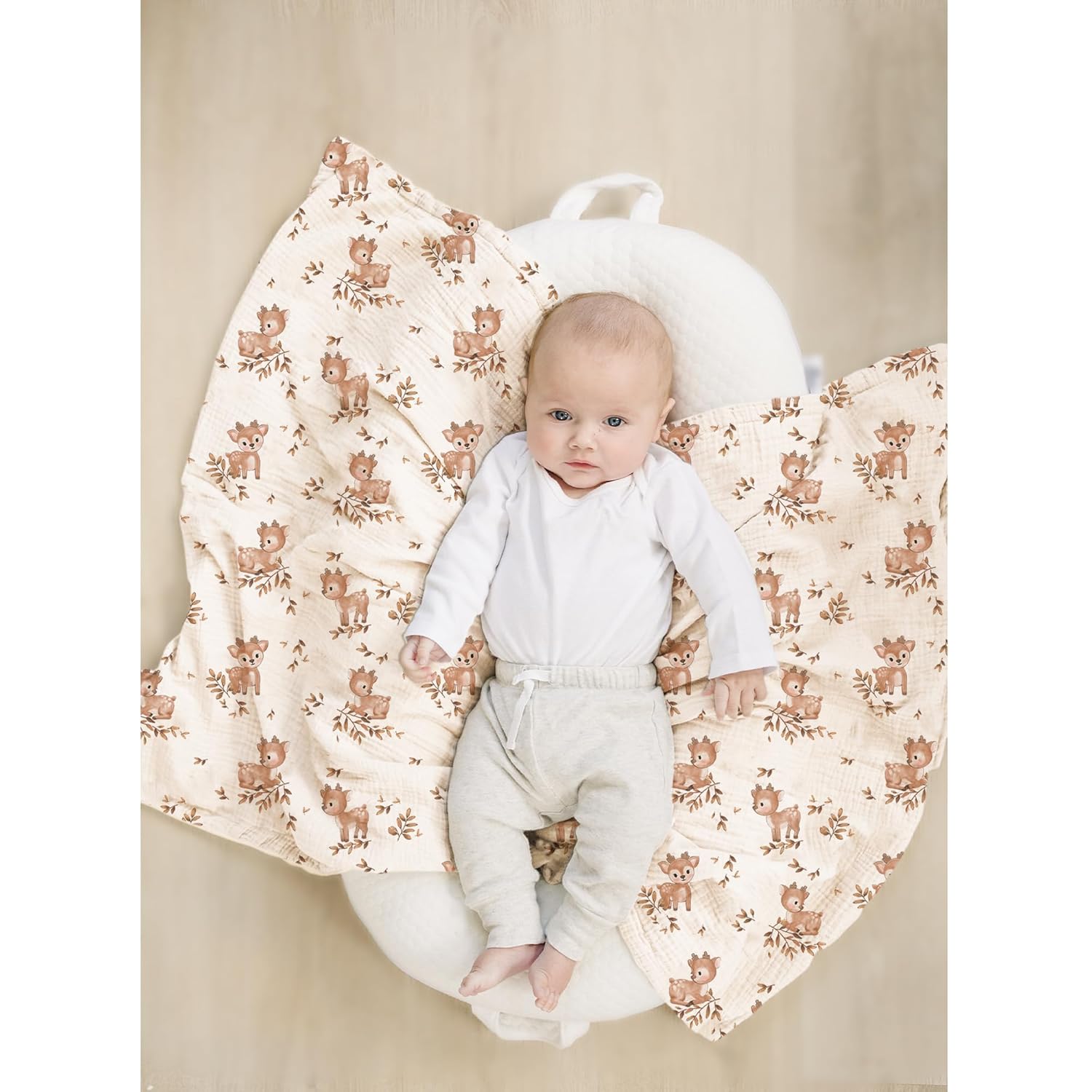 • Snug & Cozy Size: Our muslin baby blanket is way large enough to easily wrap or swaddle your babies. The back is soft plush fabric, which makes your baby feel secured and warm like mother's arms. Your little ones will sleep peacefully all night