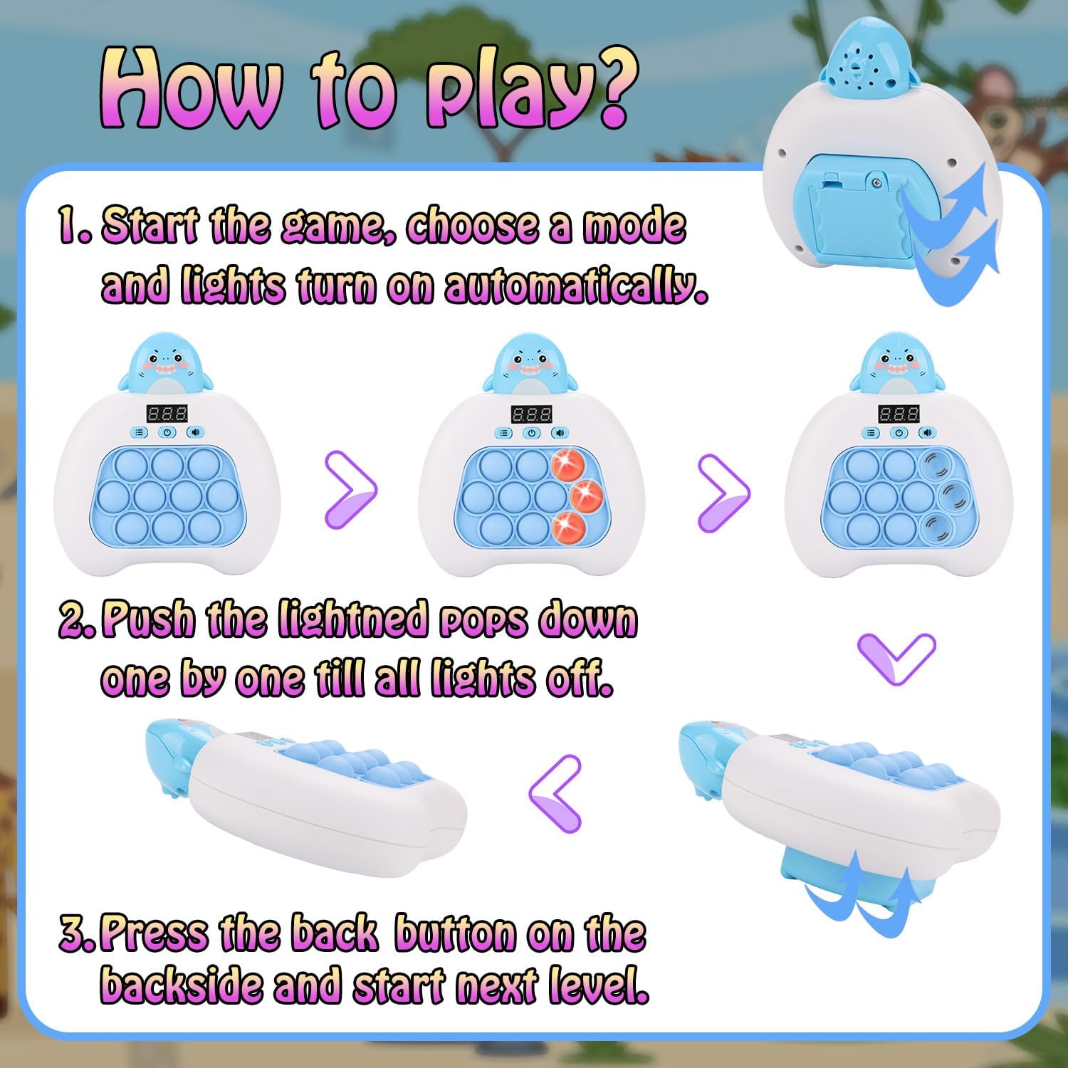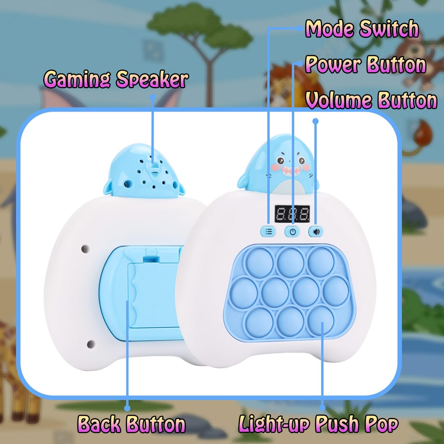 Quick Push Console Game, Pop Game Light up Fidget Toy, Handheld Puzzle Game Fast Push Bubble Game with Game Clearance Screen for Kids Teens Adults (Shark)