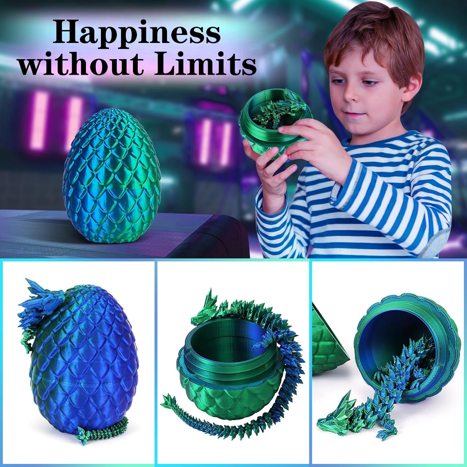 3D Printed Dragon Egg Toys, Easter Egg Crystal Dinosaur Eggs Fidget Toys with Movable Joints for Kids Adults Gifts (Green)