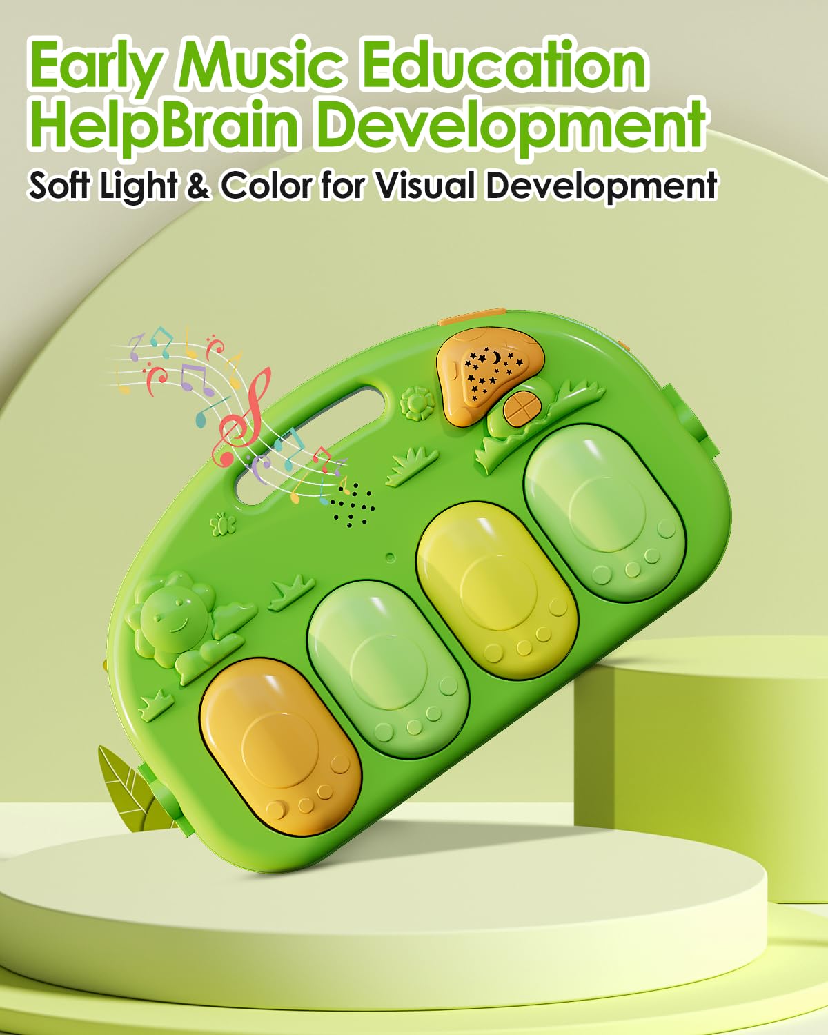 Dearlomum Baby Play Mat & Gym, Funny Piano Tummy Time Activity Mat with 5 Sensory Toys, Music & Lights - Boy & Girl Gifts (0-12 Months, Green)