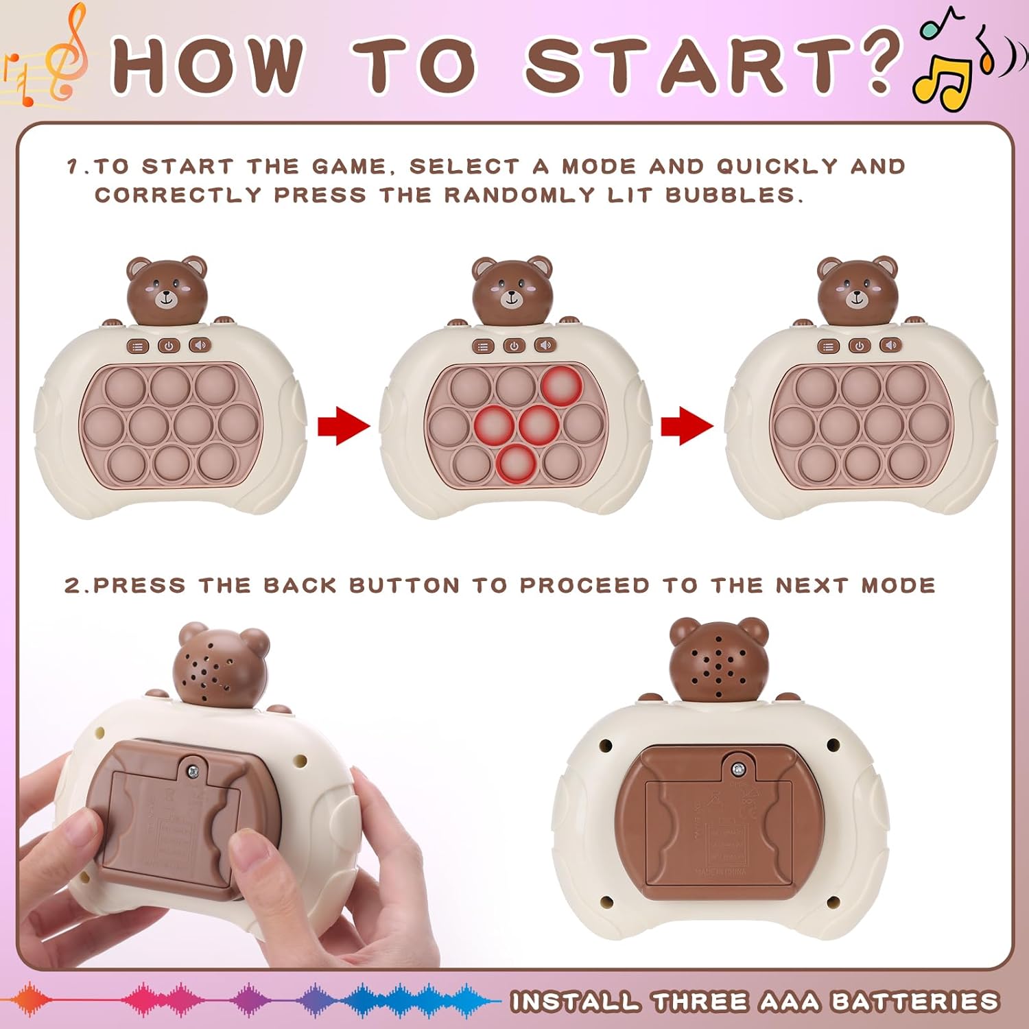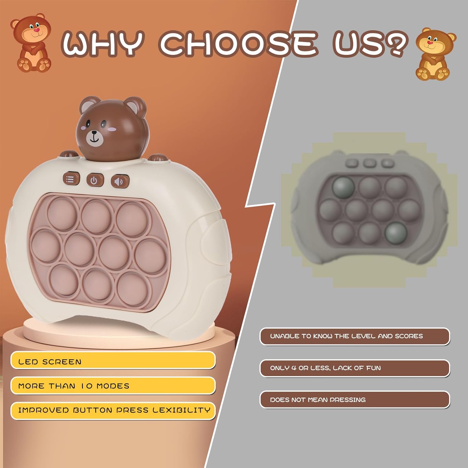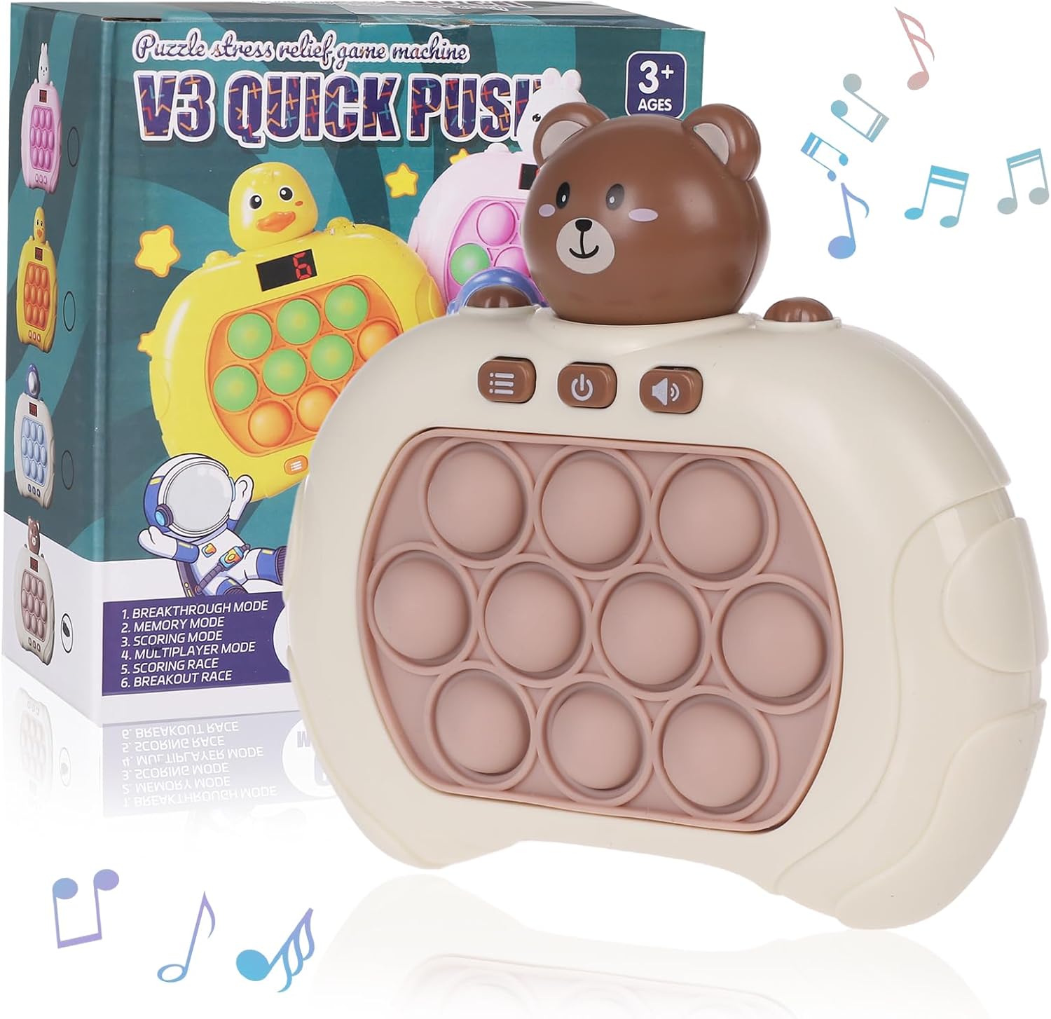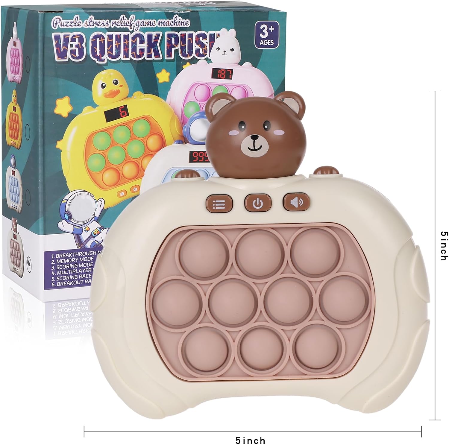 Fast Push Game Pop Fidget Toys for Kids, Fast Push Bubble Game, Quick Push Pop Game for Boys & Girls Age 3-12, Handheld Puzzle Game Sensory Toys Relaxation and Decompression (Grey Bear)