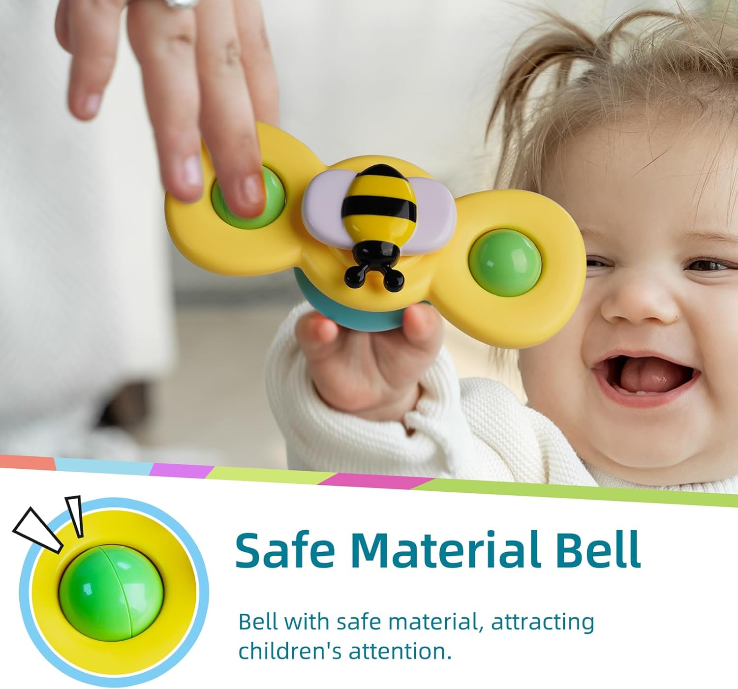 LiKee Strong Suction Cup Fidget Spinnerz Sensory Bath Toys for Baby 12 18 Months Airplane Car Travel Table & Window Toys for 1 2 Year Old Toddler Boys and Girls (Insect)