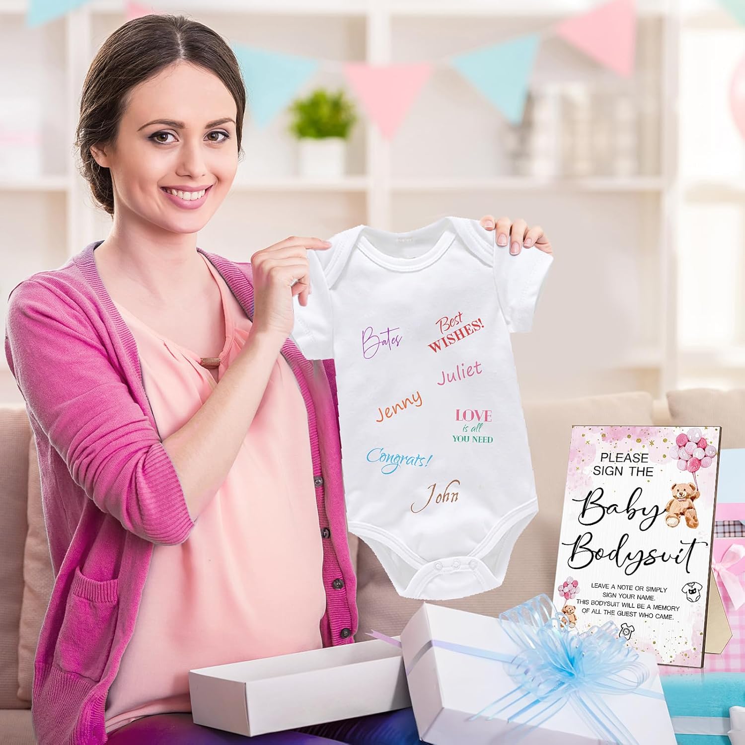• Nice and Complete Set: there is 1 piece of wooden sign, 1 piece of white bodysuit for baby, and 10 pieces of colorful markers, abundant quantities and nice combinations to satisfy your daily using and baby shower needs
