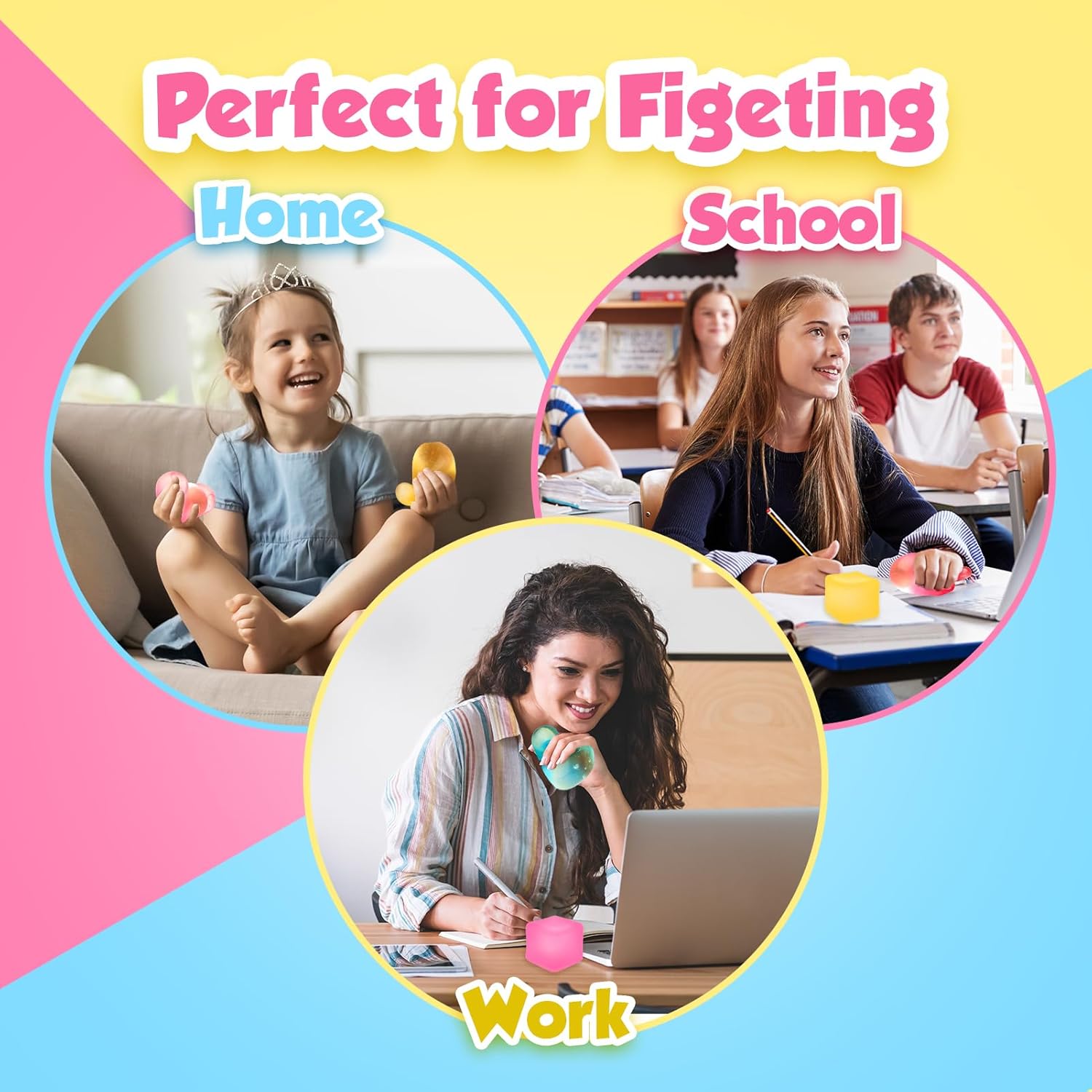 • 【VIBRANT CUBES 3 PACK】Experience the extreme in relaxation with our set of 3 vibrant cubes: pink, yellow, and blue, designed to evoke a sense of calm and tranquility. These brightly colored soft squares offer a soothing tactile experience, perfect for individuals seeking anxiety relief