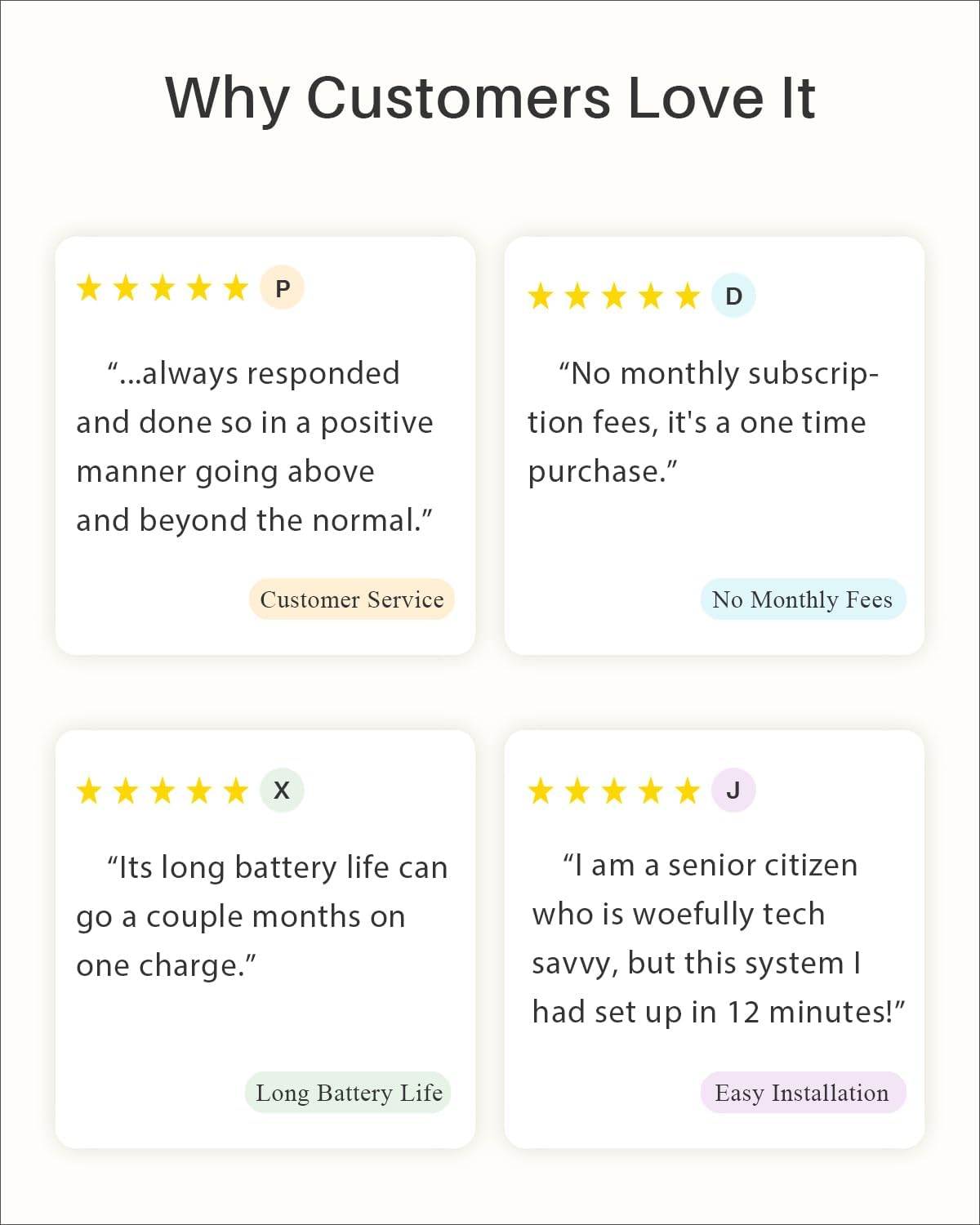 • Long-Lasting Battery - The 9600mAh high-capacity battery can last for up to 8 months on a single charge. Plus, if your home security camera is connected to the WUUK solar panel (sold separately), you won't have to worry about recharging it.