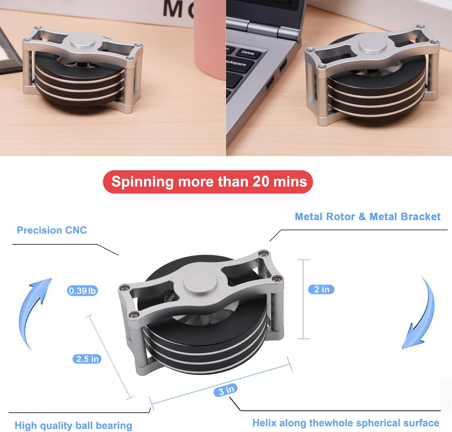 • Cool-Gadgets: Enjoy the smooth and noiseless spinning of this fun device, which is sure to captivate your attention and enhance your workspace. Each super-gyroscope has been tested for a long time before leaving the factory, and the quality is guaranteed. You will also get a one-year warranty.