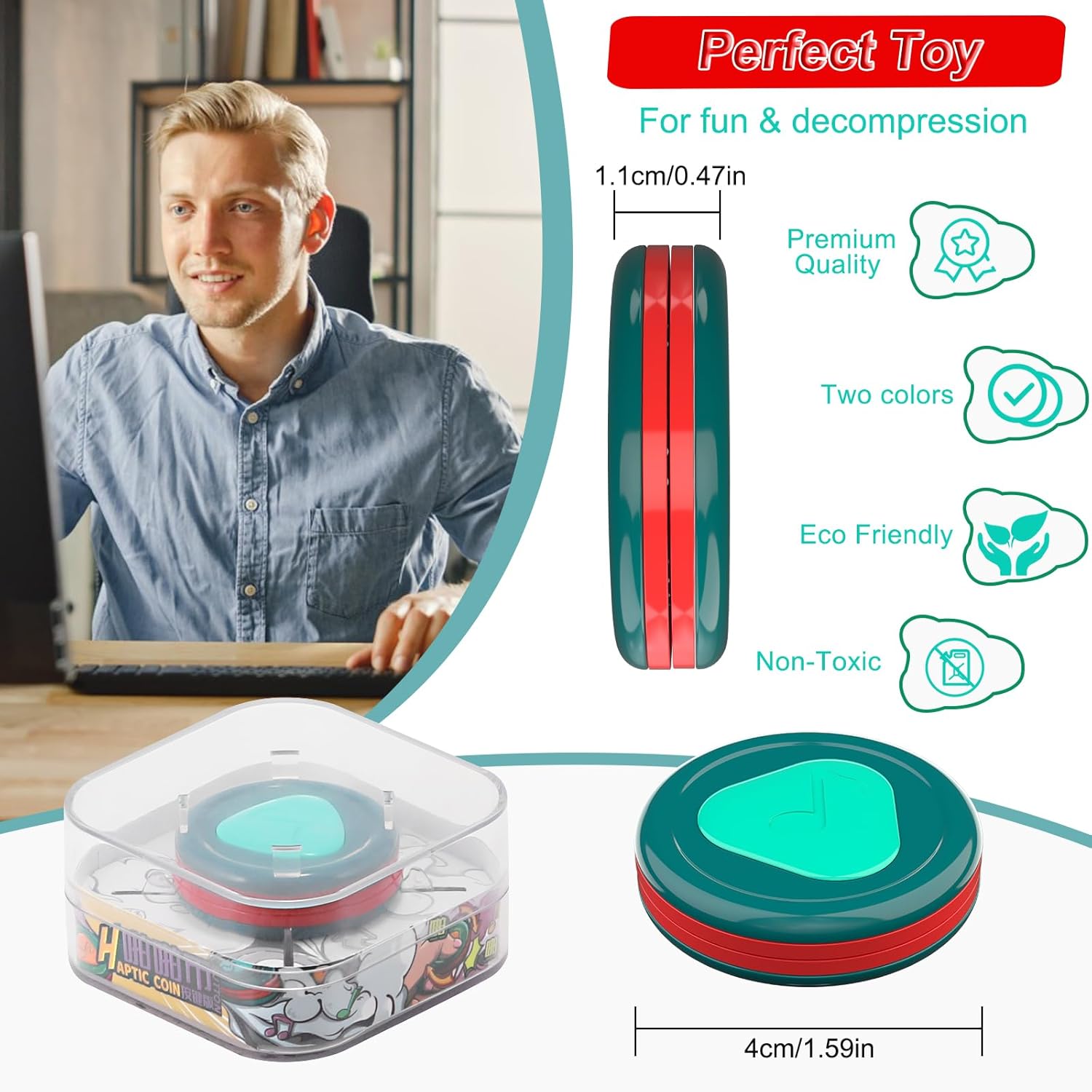 • Fidget Slider Coin Toy - Push magnetic decoder toy, it can make a crisp metal thumping sound and dampening feedback, or press the center area to make a clicking sound and bounce feedback. Small and delicate, ergonomically designed for one-handed operation.