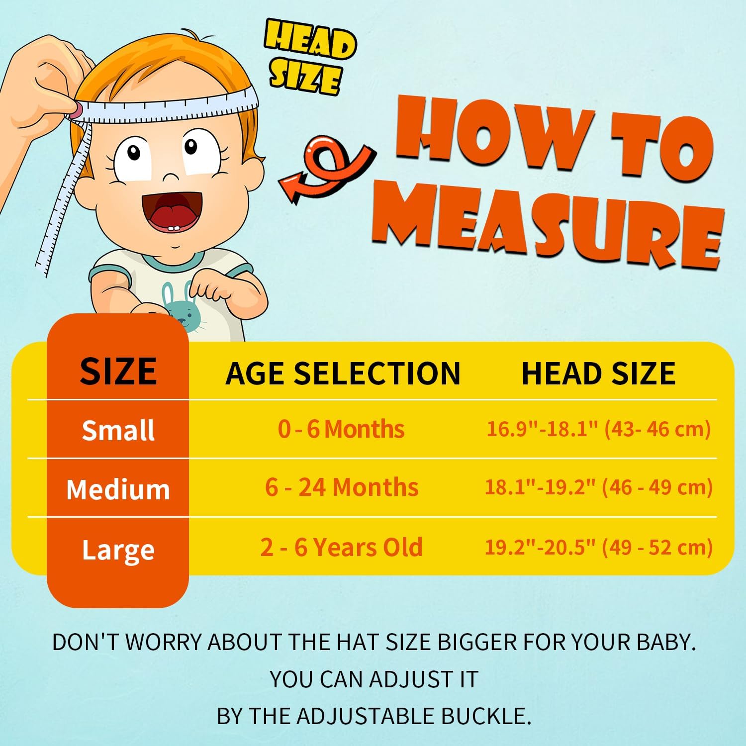 • 【ADJUSTABLE &VARIOUS SIZE】 --- Our baby bucket hat have 3 sizes to choose from: 0-6 months fits head circumference 16.9"-18.1"; 6-24 months fits head circumference 18.1"-19.2"; 2-6 years fits head circumference 19.2"-20.5". The age is only for reference, you can choose the perfect size according to your baby's head girth. Also The stretchy headband and rope buckle behind the sunshade hat can adjust the head circumference for a comfort fit