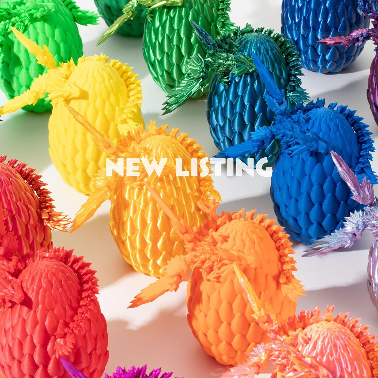 3D Printed Dragon Egg with Dragon Inside, Articulated Flying Dragon with Dragon Egg, Multi Color Winged Dragon, Crystal Dragon Fidget Toy, Home Office Décor, Easter Egg, Gift