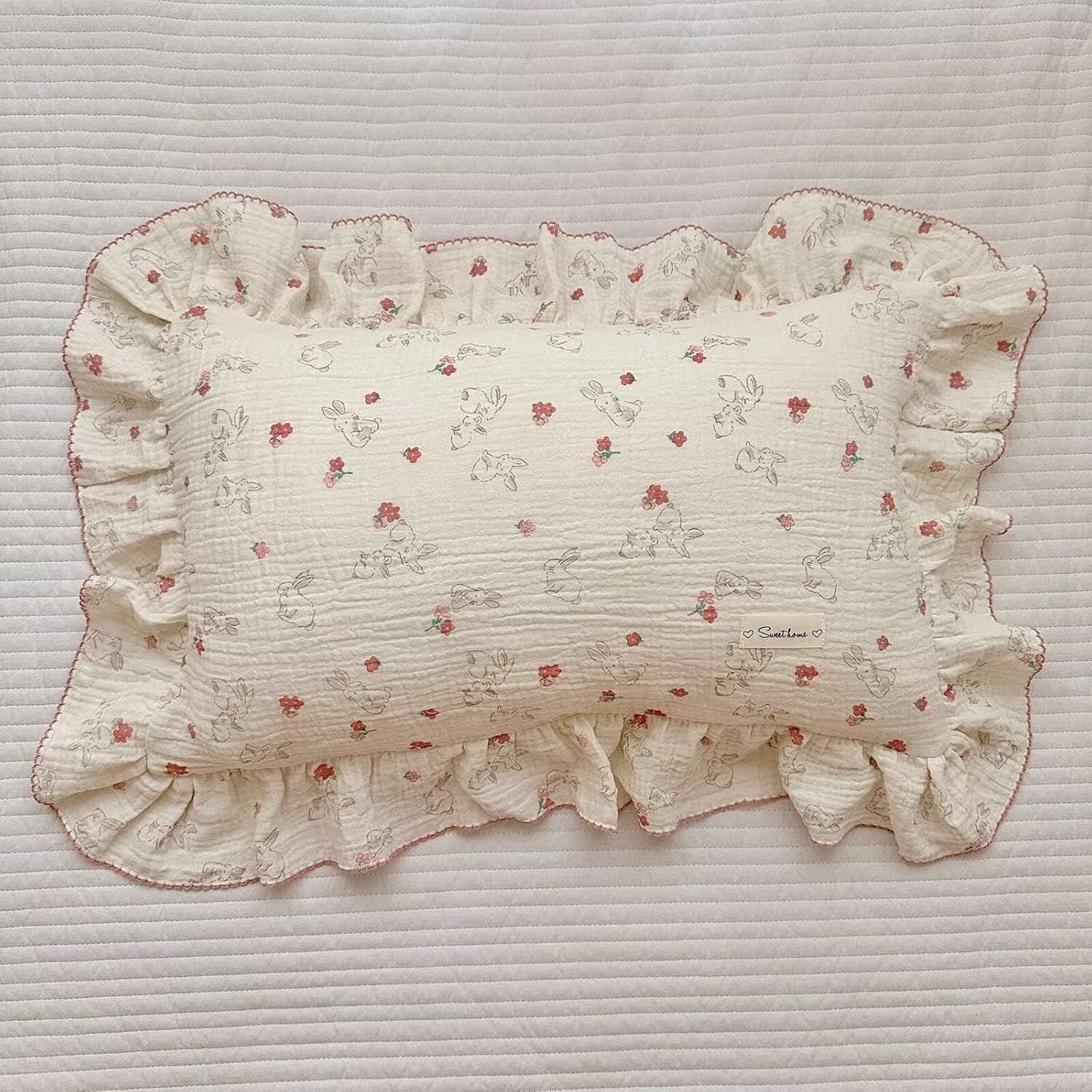 BuLuTu Rabbit Floral Toddler Pillowcase Muslin Cotton Kids Pillow Case Standard Size, 20"x26", Soft Breathable Children Bedding Pillow Cover for Girls Boys,1 Piece, Bunny Pattern