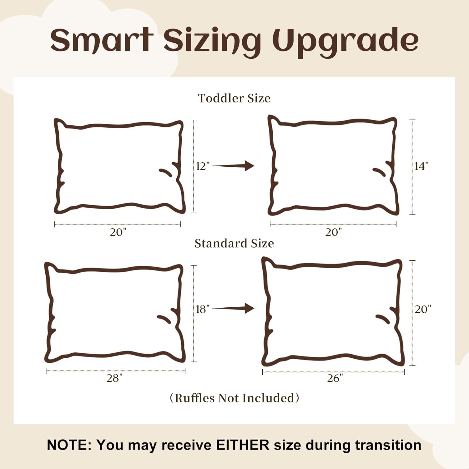 • Size: Toddler size pillowcase measures 20"L x 14"W, ideal for 1-3 years old toddlers girls boys, perfect for crib/cot/swaddle. Standard size pillowcase measures 26"L x 20"W, ideal for 3-12 years old kids girls boys, perfect for toddler bed children's bed. These cute pillow protectors are enveloped closure. Please understand the pillow insert/filling NOT included
