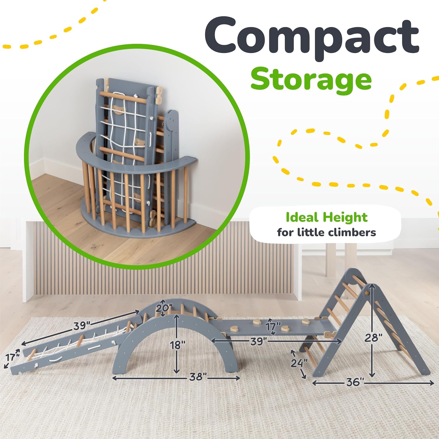 • ENDLESS FUN: Keep little ones entertained for hours by configuring the Pikler, Arch, Slide and Rope Climber in different ways to create their indoor play gym. They can hone their motor and coordination skills and burn off that toddler energy.