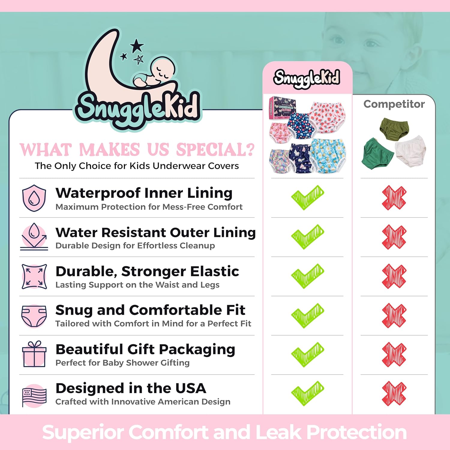 • Leak-Proof Your Little Poopsie: Head off those messy accidents with these cute rubber pants for toddlers; Simply slip them on over your tot's undies, diaper, or training pants for ultimate protection