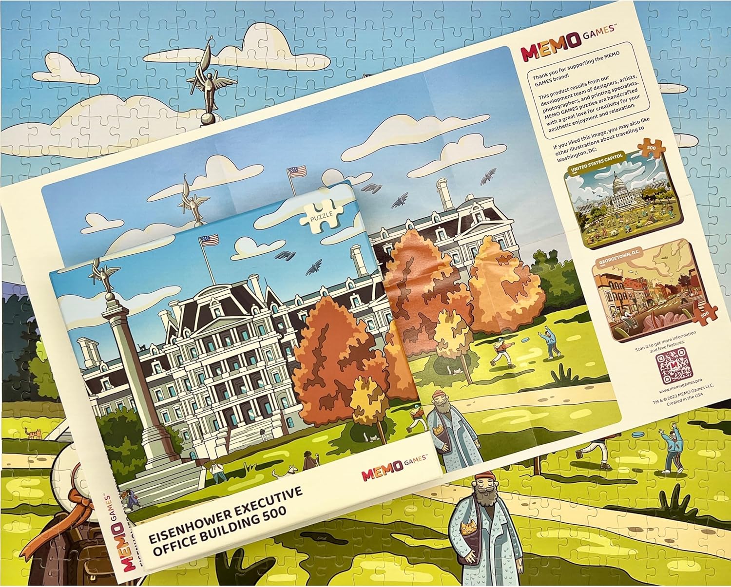 - IMMERSE YOURSELF IN US HISTORY AND CULTURE — Dive into the rich tapestry of American heritage with our meticulously crafted 500-piece jigsaw puzzle, featuring a hand-drawn illustration of the iconic Eisenhower Executive Office Building in Washington, D.C. This artwork is one of our 25 unique designs, each capturing a different facet of history and culture.