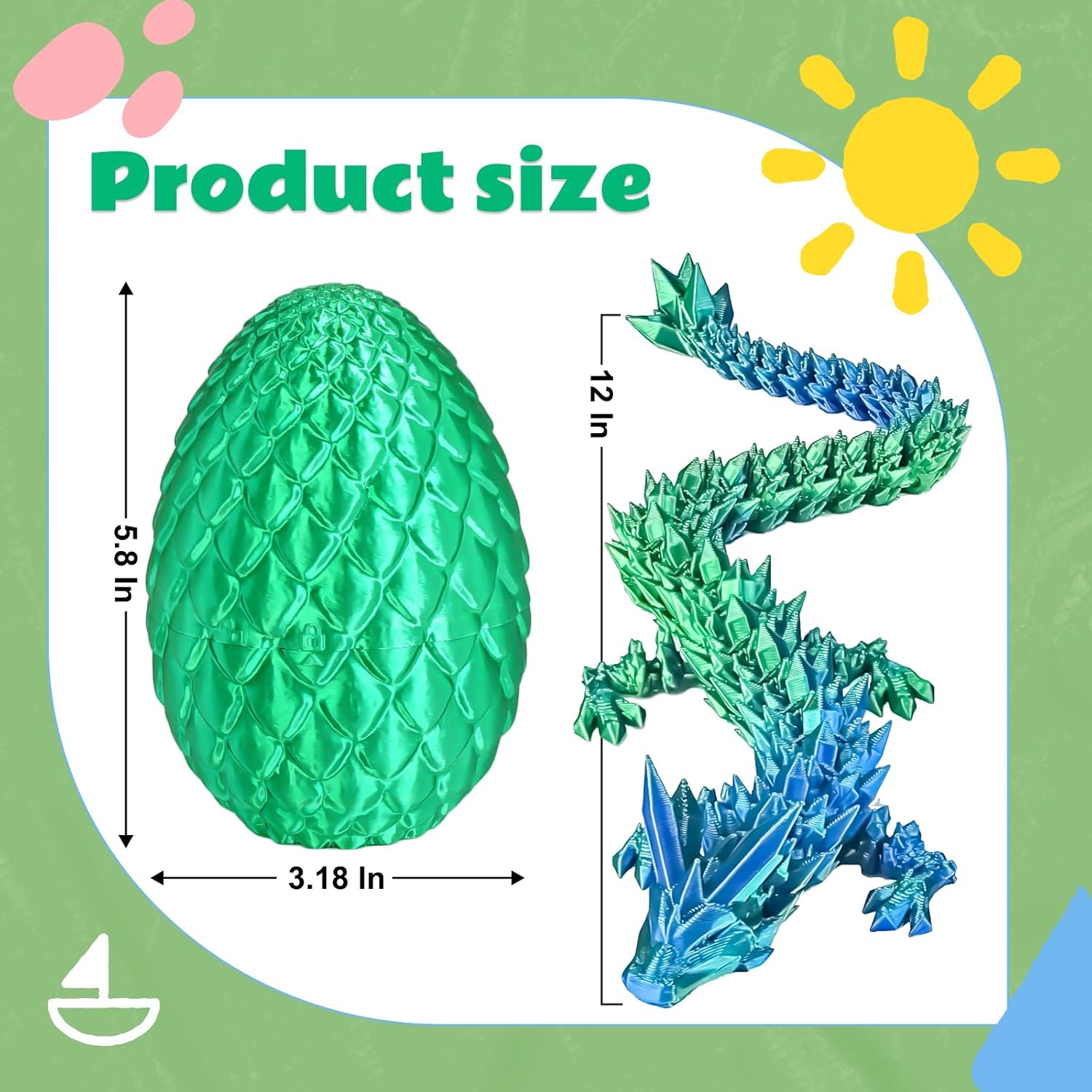 • Perfect Size: At 5 inches for the dragon egg and 12 inches for the 3D printed dragon, they're just the right size to sprinkle some magic in any room! ✨
