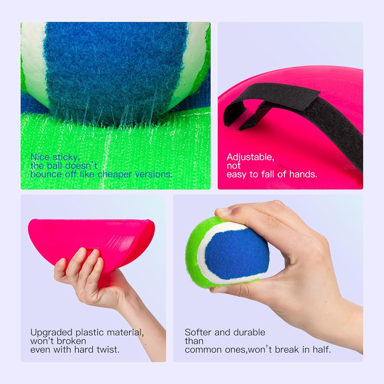 EVERICH Upgraded Toss and Catch Ball Game Set - Indoor and Outdoor Games for Kids 3-12, Beach Sand Pool Water Toy Includes 4 Paddles 4 Sticky Balls, Great Birthday Easter Gifts for Boys Girls