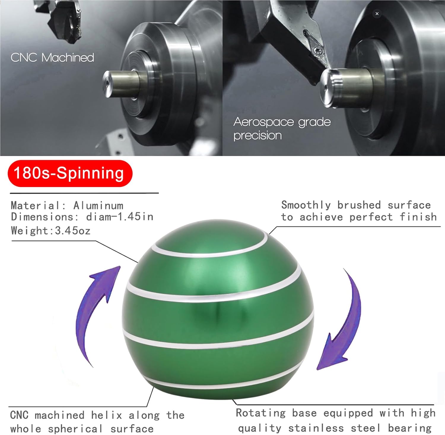 • 【Desk-Kinetic-Toys】1.48 in/0.16 lb, Spinning 180 seconds. Aluminum metal desk toy ball manufactured by CNC processing, small and exquisite.No batteries required & No tools required.