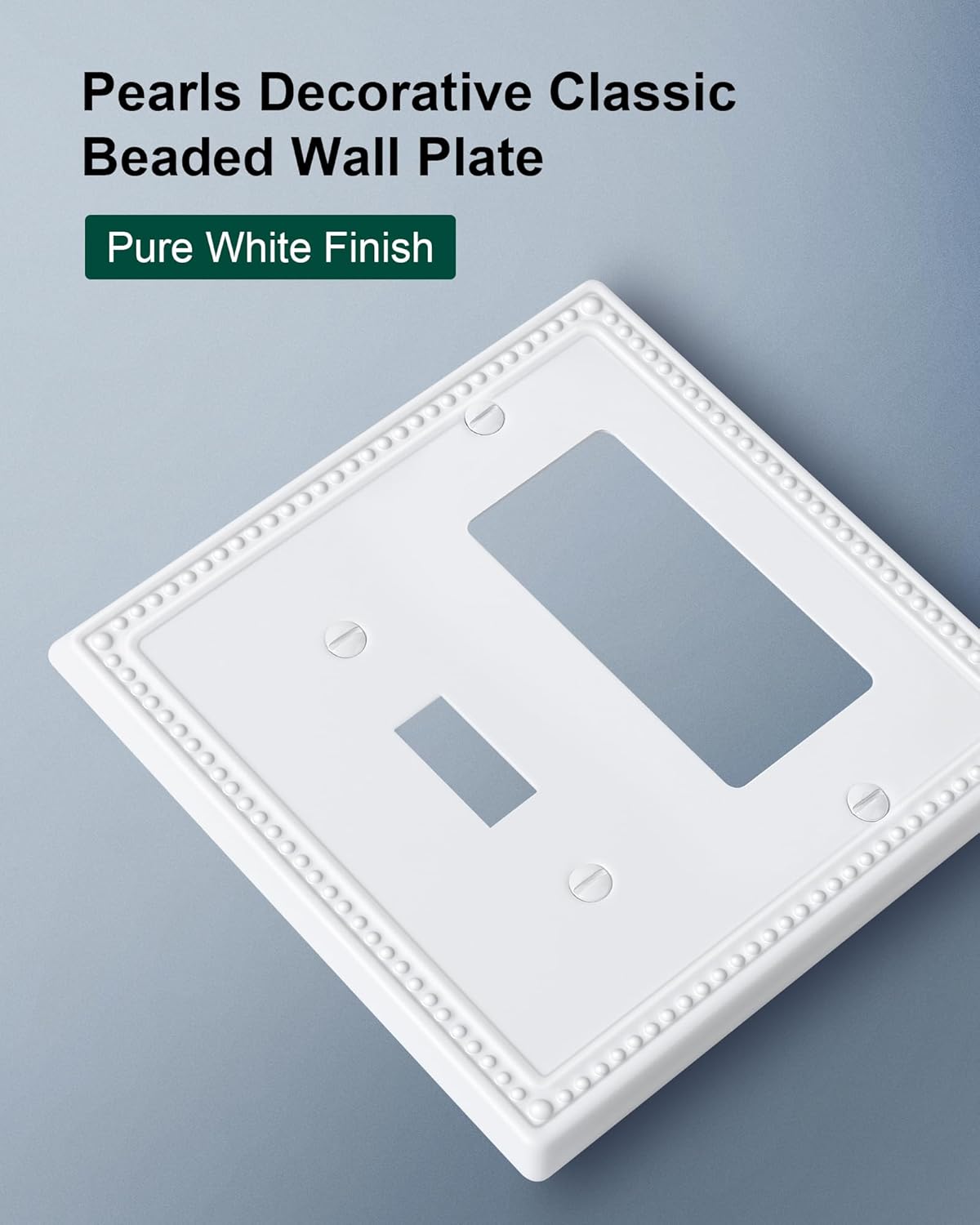 • Timelessly Elegant - The switch plates and outlet covers features an exquisite crisp white finish with a stylish beaded border. Offering an inviting, comfortable feel to your home decor. Effortlessly blends practicality with a refined decorative accent and sophisticated charm.