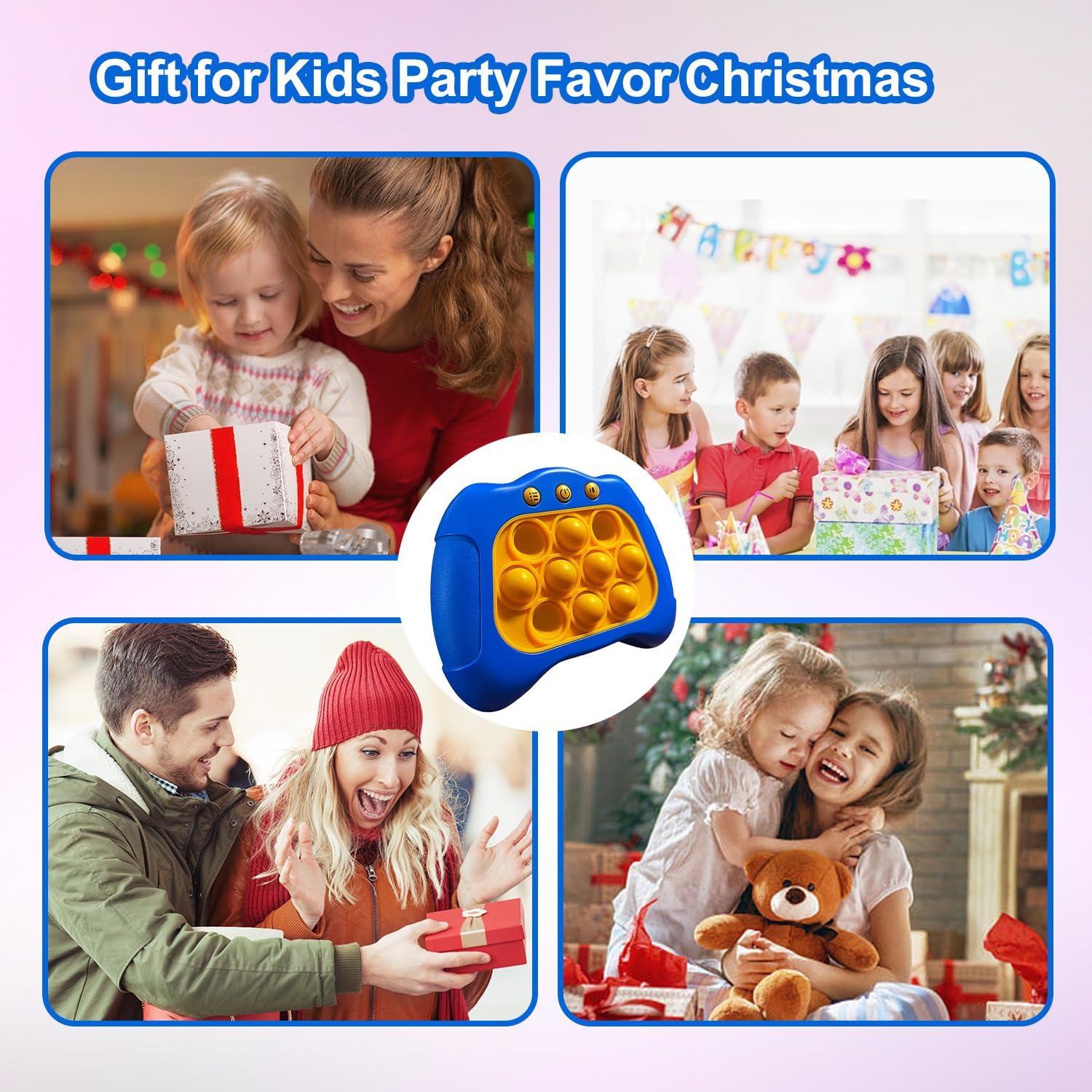 Quick Push Puzzle Game Machine Pop Fidget Light-Up Squeeze Poppet Sensory Toy Educational Push Pop Bubble Toy Stress Relief Party Favors Puzzle Game for Kids Teens Adults (Blue)
