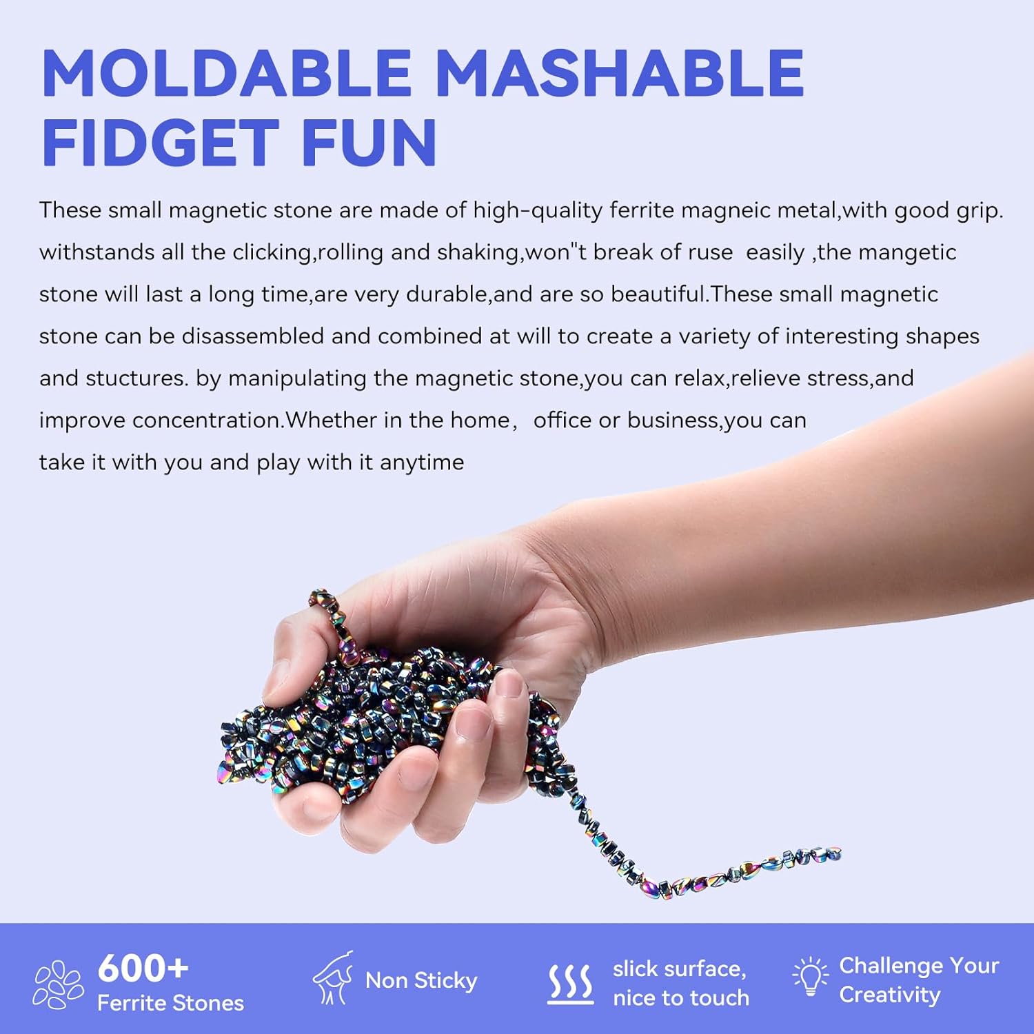 • 【Colorful Magnetic Beads】The magnetic balls box includes 600pcs mini weak magnetic beads and 4 large smooth magnetic beads. The magnetic ball is made of a high-quality ferrite magnet. These mini magnets are pliable, making them easy to mold, stack, and mash, offering relief from stress and boredom. Many smooth and irregular mini magnetic beads can be grasped very well. The box is about 0.9 pounds.