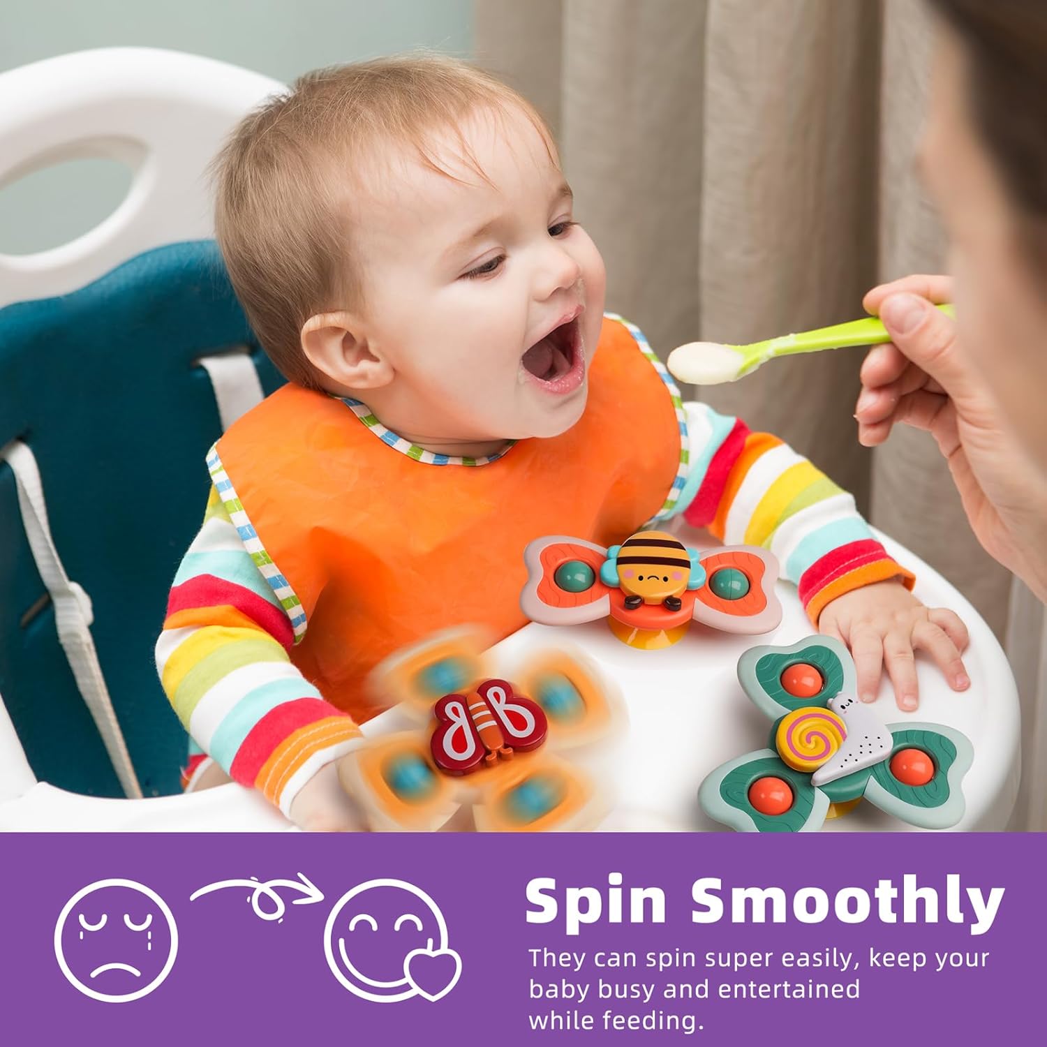 • Multi-Sensory Stimulation: Each Spinning engages your baby's sight, hearing, and touching