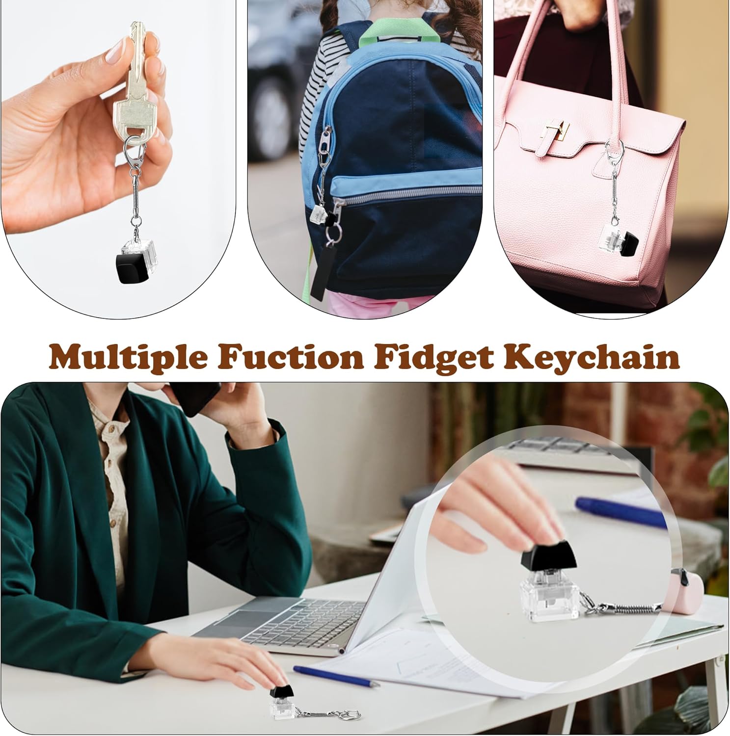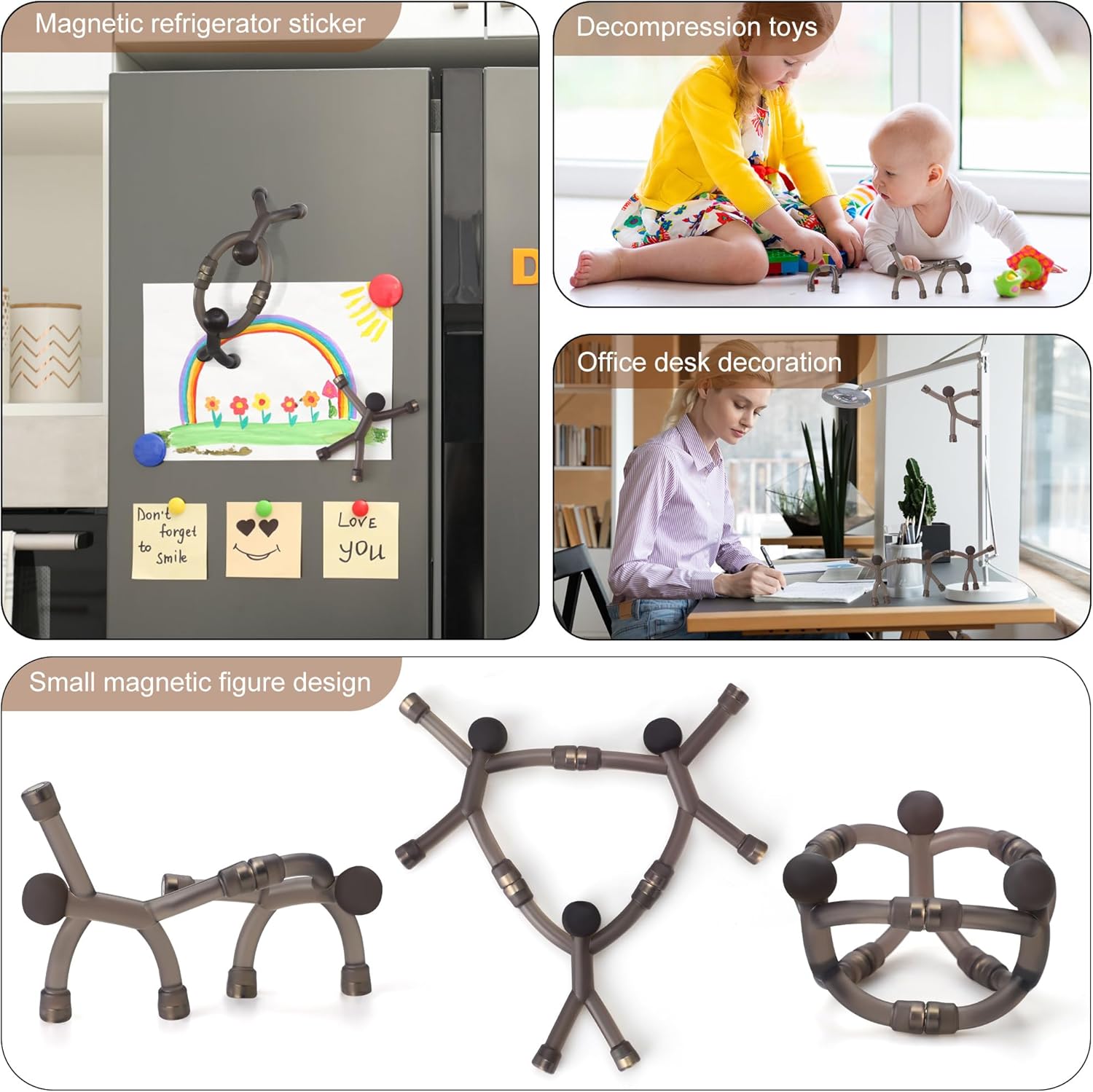 • Fidget Toy Set - This fidget toy pack including 1pc fidget spinner, 1pc fidget pad, 3 pcs magnet men, 1pc keyboard fidget keychain