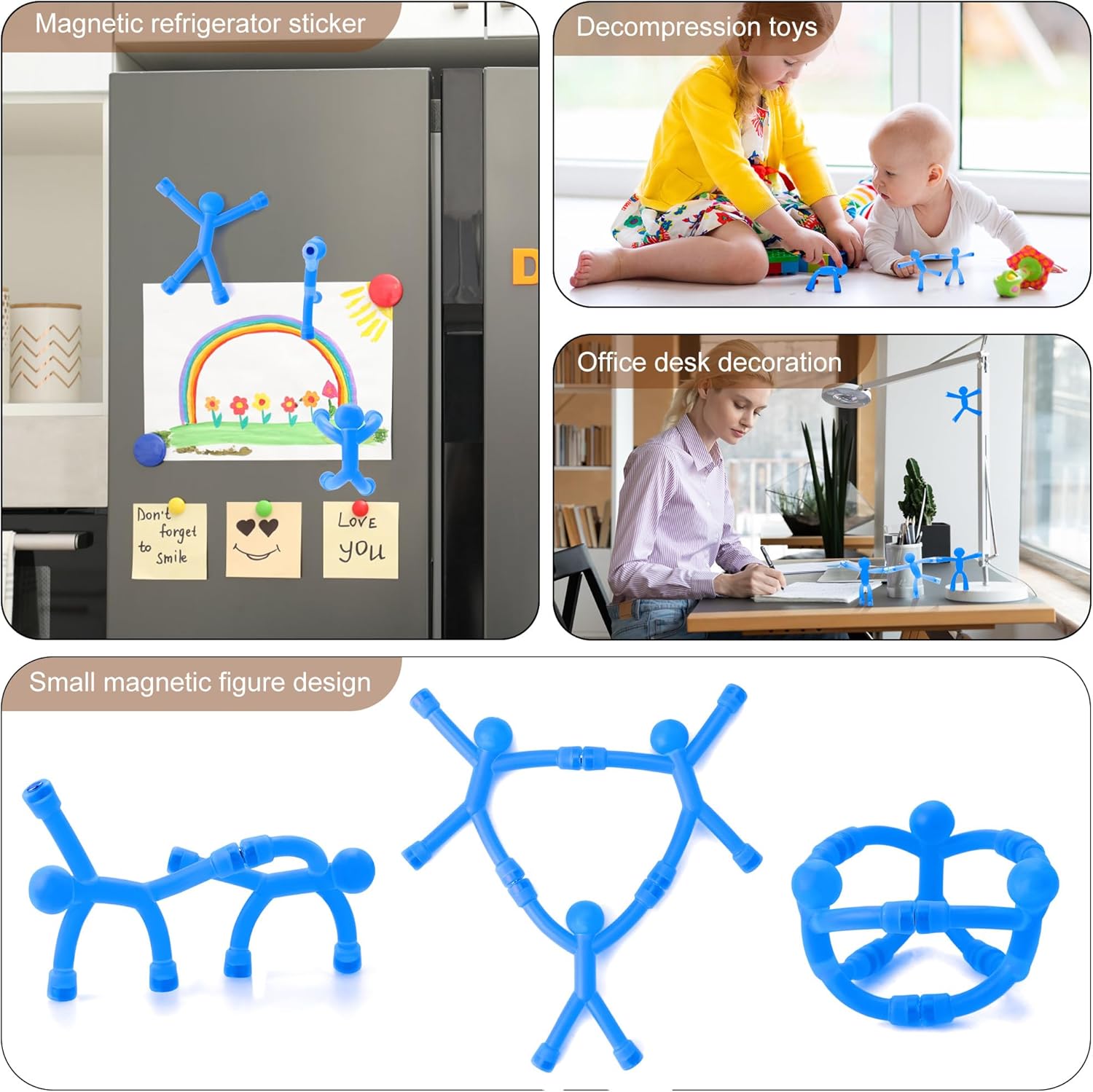 • Fidget Toy Set - This fidget toy pack including 1pc fidget spinner, 1pc fidget pad, 3 pcs magnet men, 1pc keyboard fidget keychain