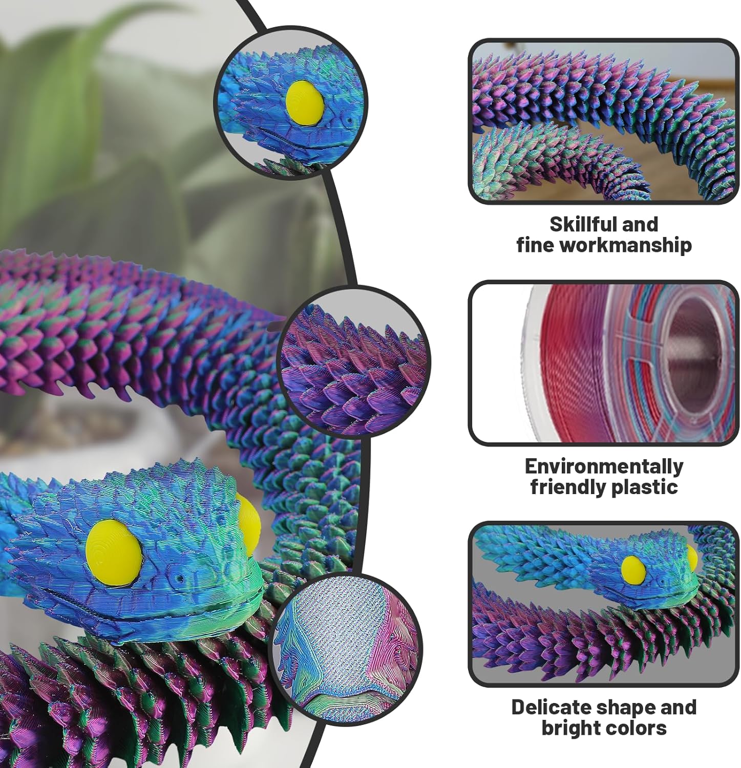 • Realistic 3D Printed Snake Design: These 3D Printed Snake Toys feature a lifelike and detailed snake design, capturing the intricate patterns and textures of a real snake, providing a unique and realistic fidget toy experience.