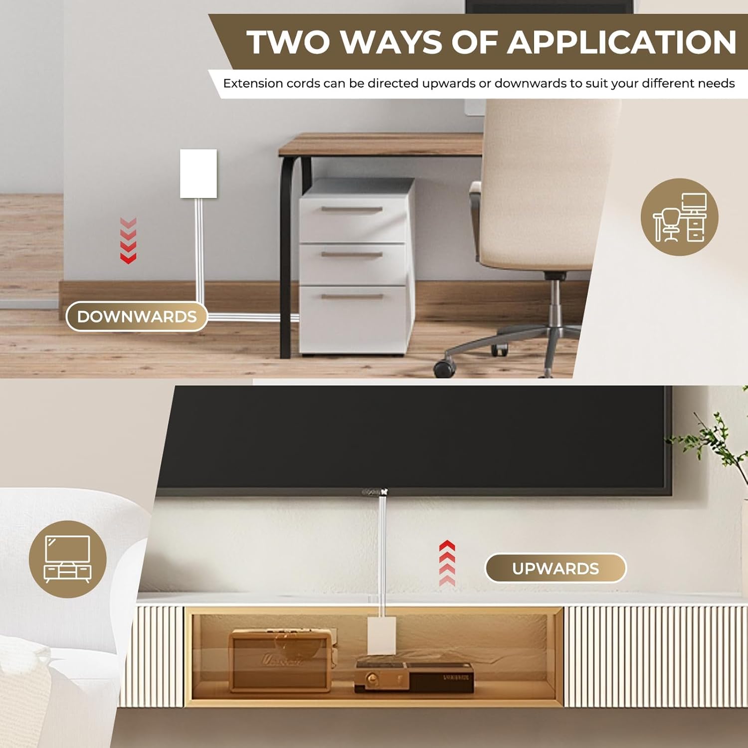 - 【ELEVATE YOUR SPACE】Effortlessly hide power strips and cords with our sleek outlet cover extension cord.Combine power strip and baby proofing features, seamlessly blend functionality with style in your bedrooms and living rooms.Upgrade your decor with our flat outlet extension cords for a neat and organized home.