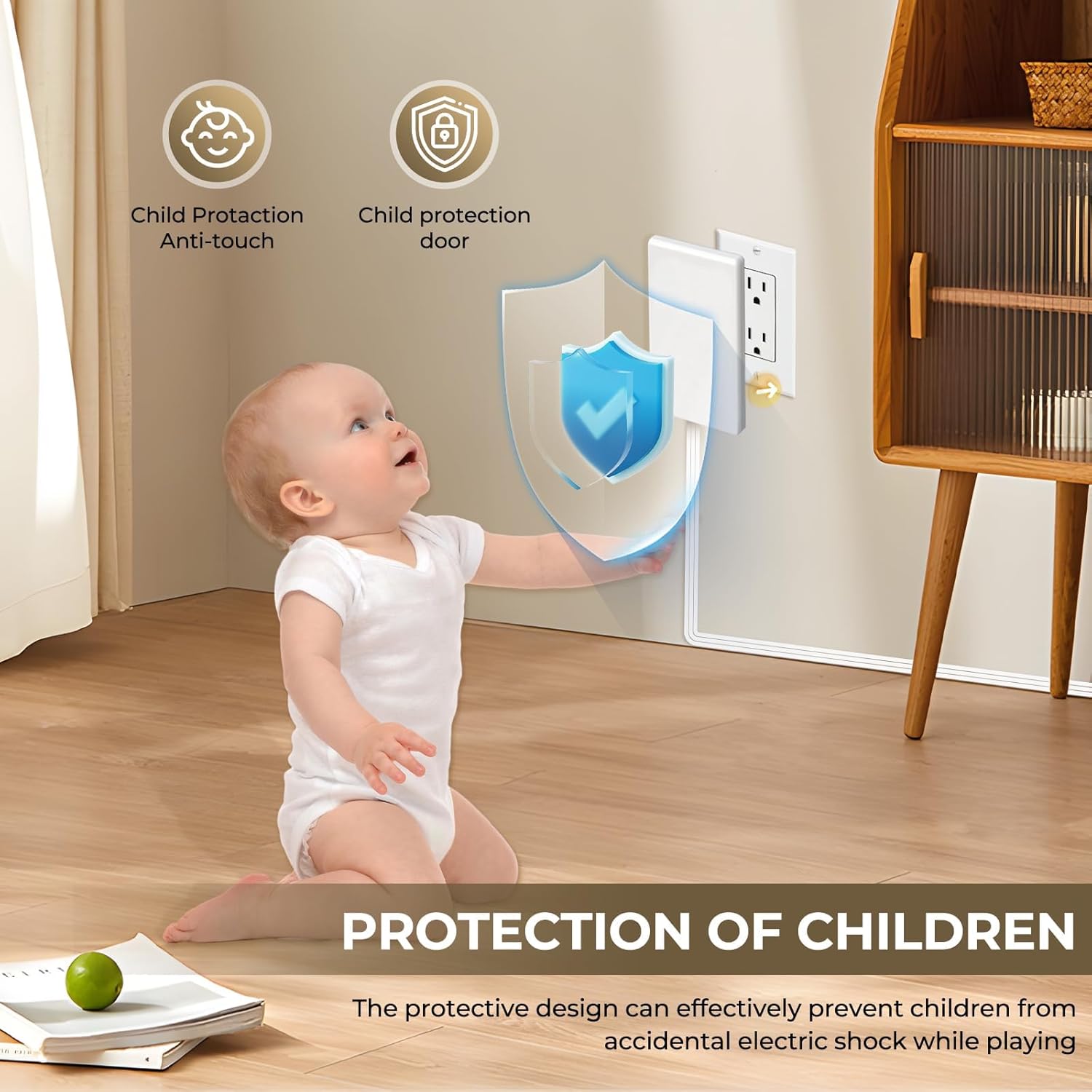 - 【SAFE FOR KIDS AND PETS】Our baby proof outlet covers have child and pet-friendly design, featuring a neat socket outlet cover and flat wall plug, prevent access to and chewing of dangerous electrical plugs and cords. Rest easy with our outlet plugs baby proofing, ensuring a secure environment around slim outlet plug, and multi outlet extension cord.