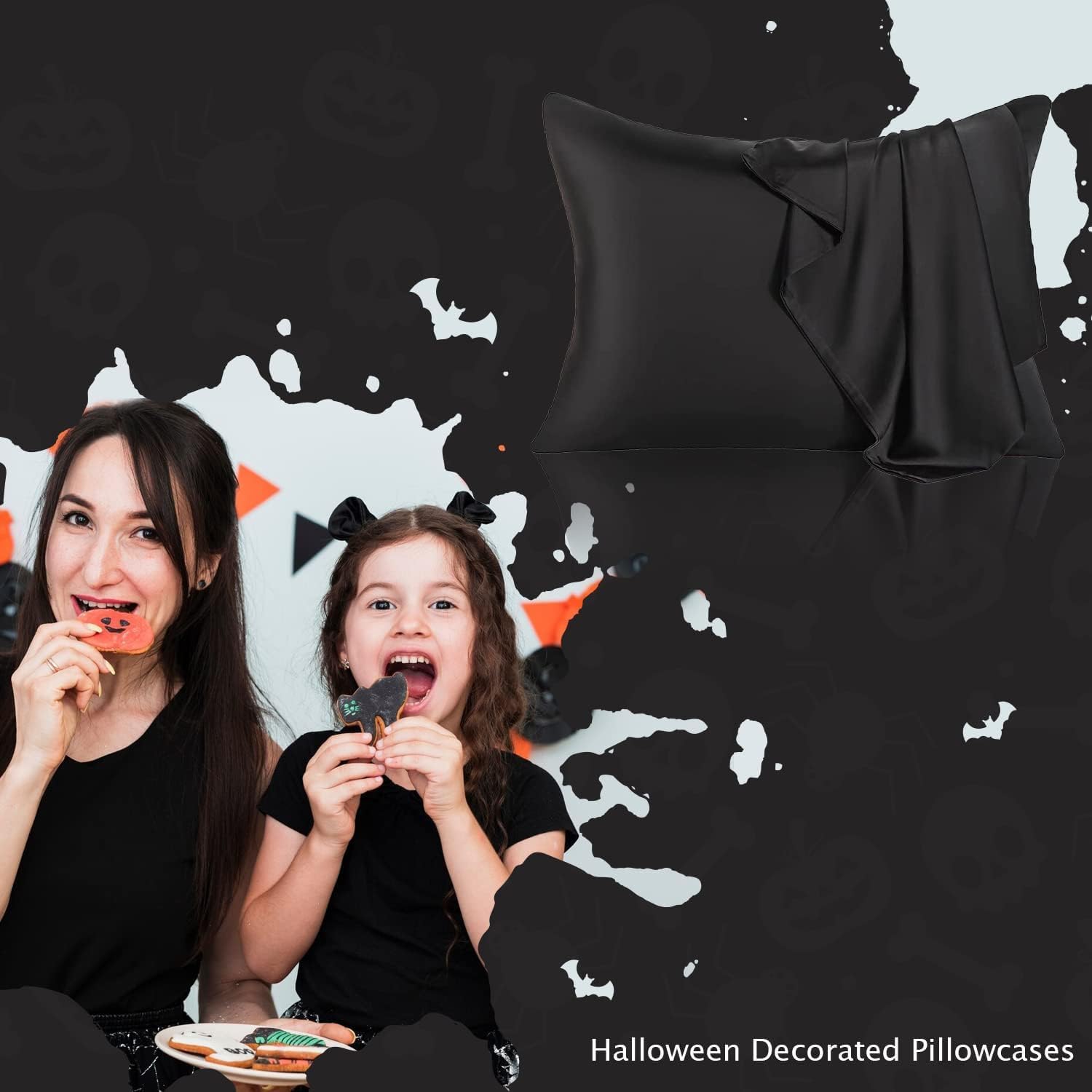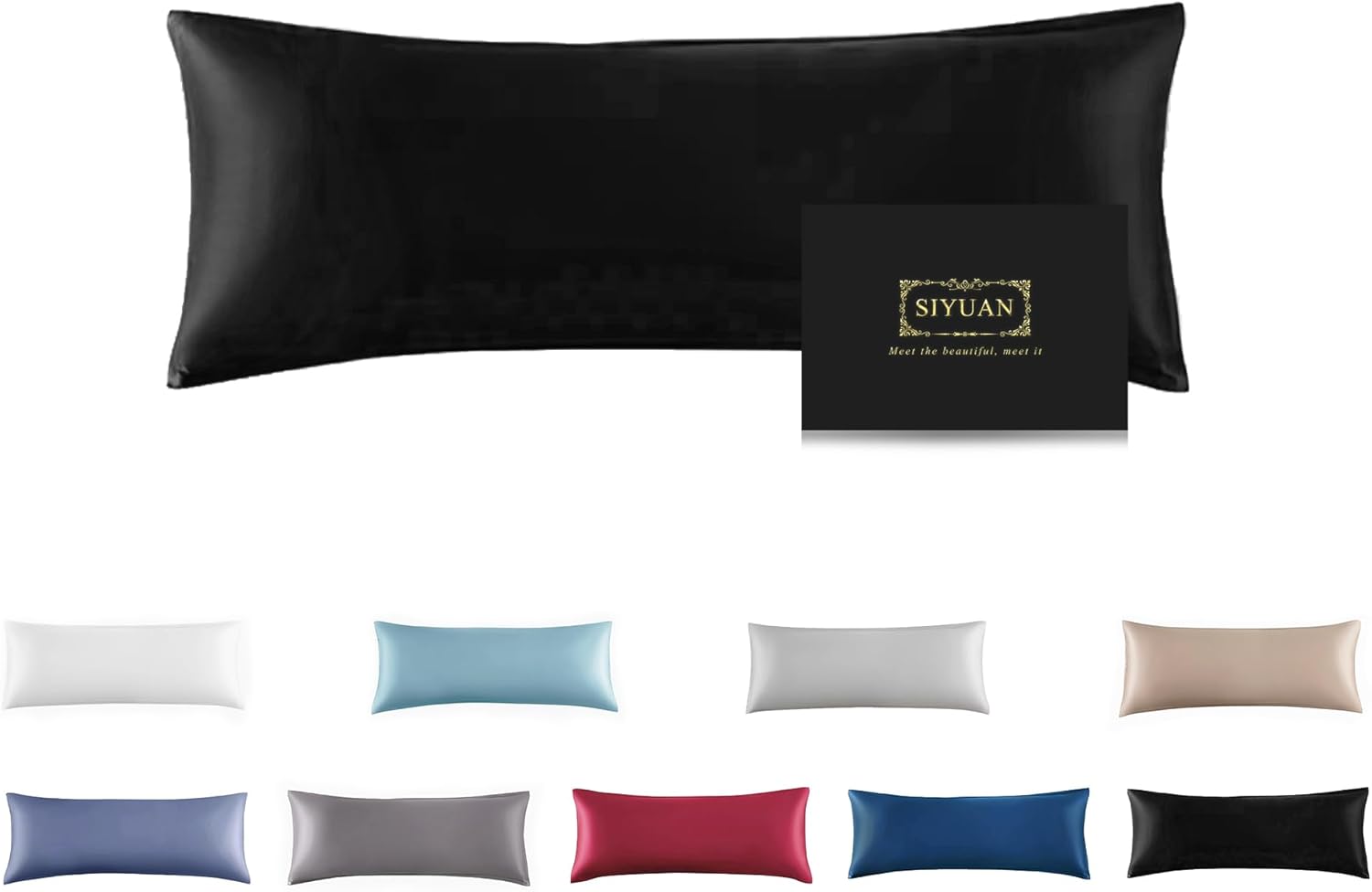 Mulberry Silk Pillowcase for Hair and Skin,Cooling Silk Pillow Case with Hidden Zipper,Allergen Proof Dual Sides Soft Breathable Smooth Silk Pillow Cover for Women (Black, Body)