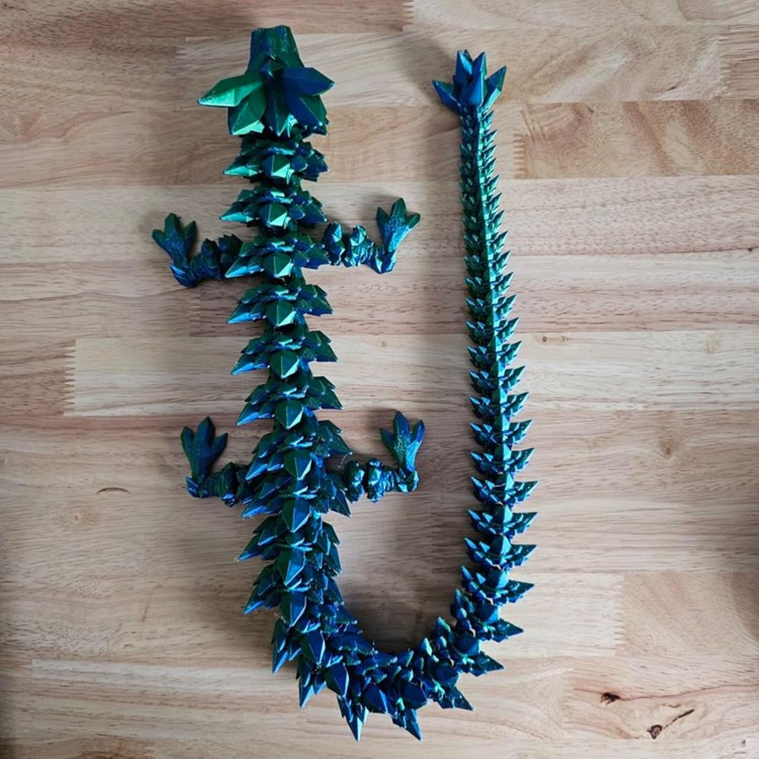 Crystal Dragon - Articulated Flexi Dragon - 3D Printed Gift (Teen, Blue/Green)