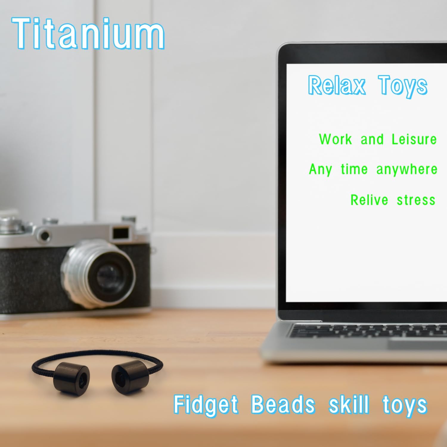 Titanium Alloy Beads - Worry Fidget Beads Skill Toys - Portable EDC Metal Fidget Toys - Gifts for Skill Players - with Parachute Cord (Black)
