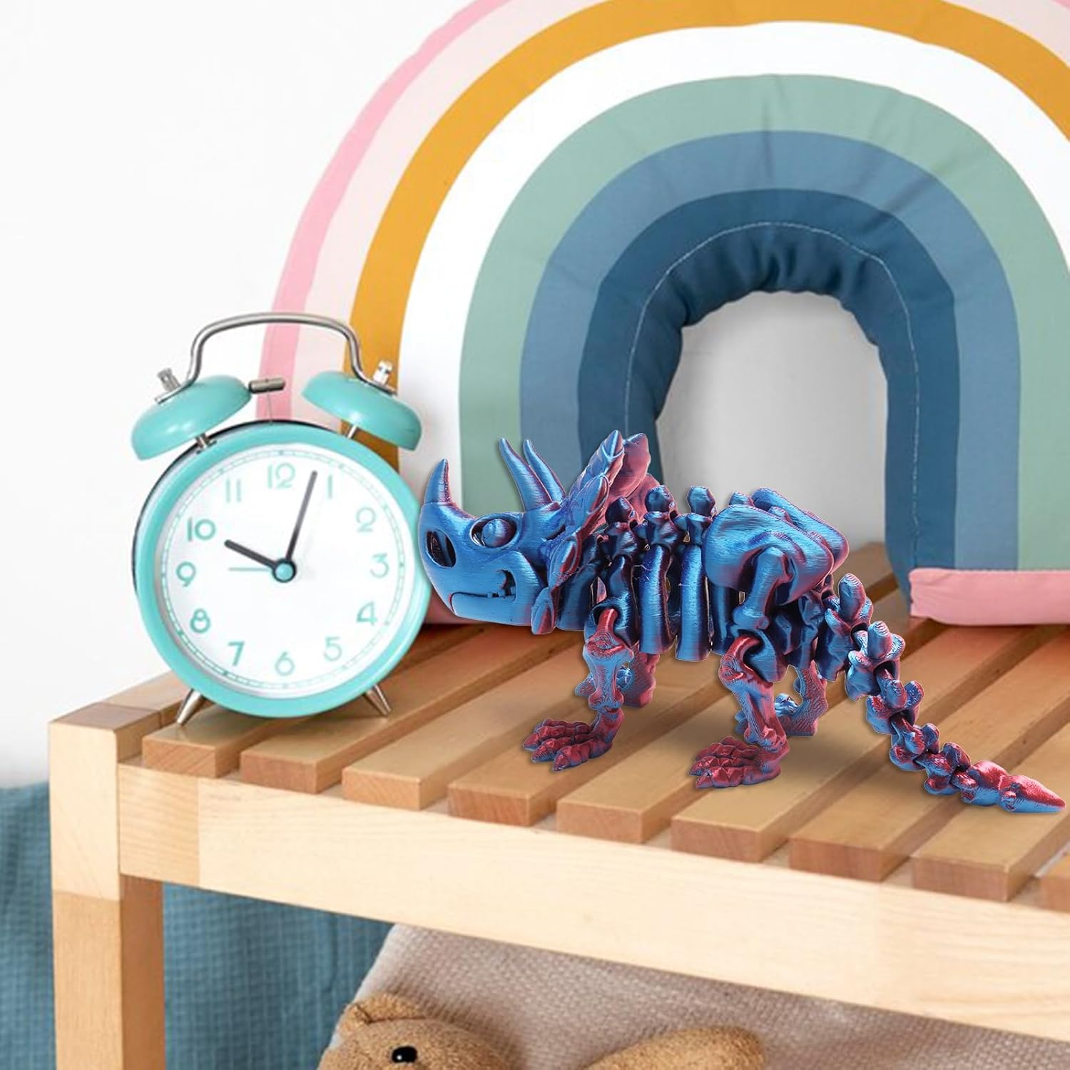 FunisFun 3D Printed Dragon with Articulated Joints for Adult, 3D Printed Dinosaur Fidget Toys Decor for Stress Relief (Triceratops-BP, 1P)