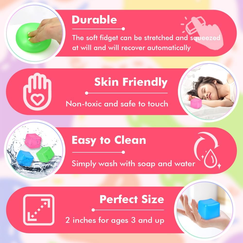 • Cube Fidget Toy: Vibrant cubes provide a sense of calm and serenity for the ultimate relaxing experience. These soft cubes provide a soothing tactile experience, perfect for those who need to release stress