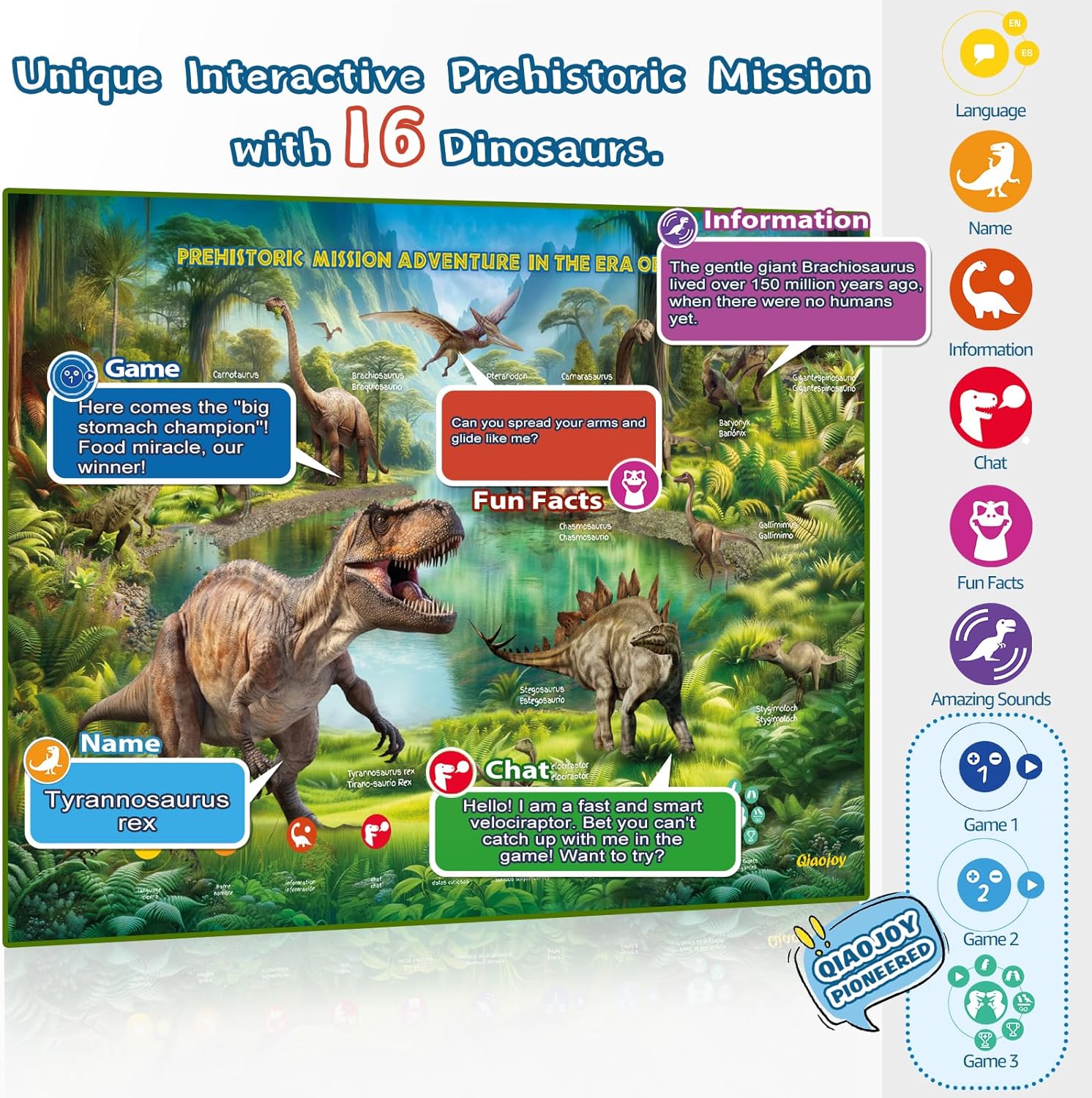 - 【Diverse Learning Content】Compared to other toddler learning toys dinosaurs on the market, it showcases unique 16 prehistoric dinosaurs, each with its own story and sound. The kid dinosaur toy includes over 500 basic dinosaur entries. Through games and touch-based storytelling, it narrates the amazing era of colorful dinosaurs that roamed this land millions of years ago. Additionally, each dinosaur has its own amazing sounds, captivating every child into the adventure.