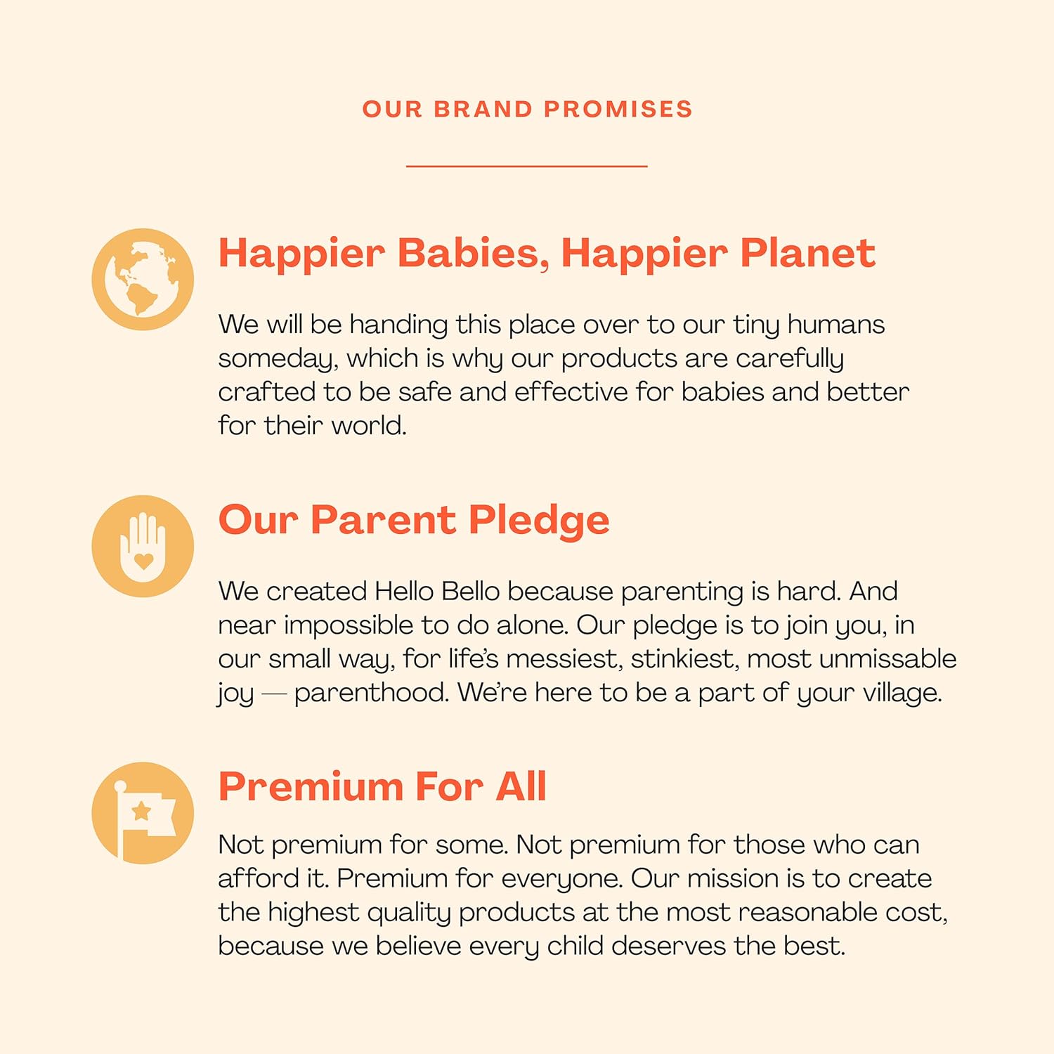 • HELLO BELLO PREMIUM DIAPERS: Doody-catchers; Crap-sacks; Tinkle-poopers; Whatever you want to call them, our plant-based, super soft and absorbant disposable diapers are a modern convenience you don't want to live without