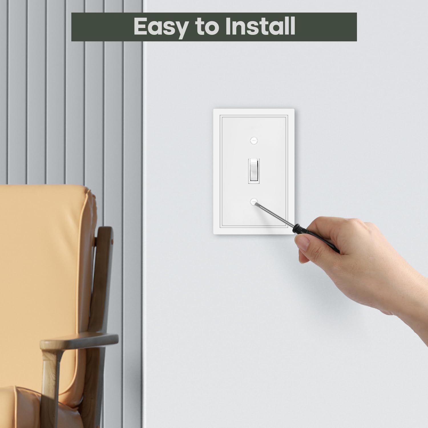 • Size package: The package includes 4 pieces of single toggle light switch covers and painted screws, easy to install with a screwdriver. The size of the single toggle light switch cover is: 3.15 x 4.92 inches