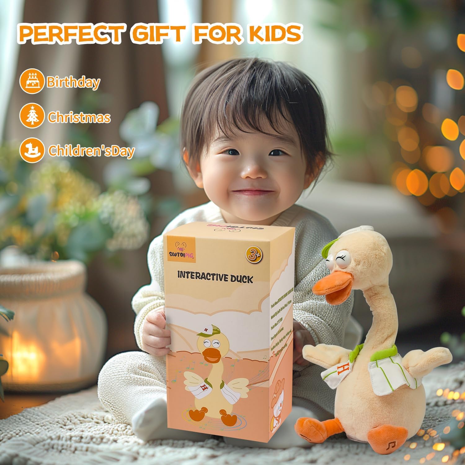 - ๐ฅใ๐๐๐ก๐๐๐ก๐ ๐๐จ๐๐ใOur interactive stuffed duck can sing and dance! It has learned 29 dynamic songs suitable for young children. Just tap a note on your right foot and it will flap its wings, sway its neck, and increase its enthusiasm to 120%!