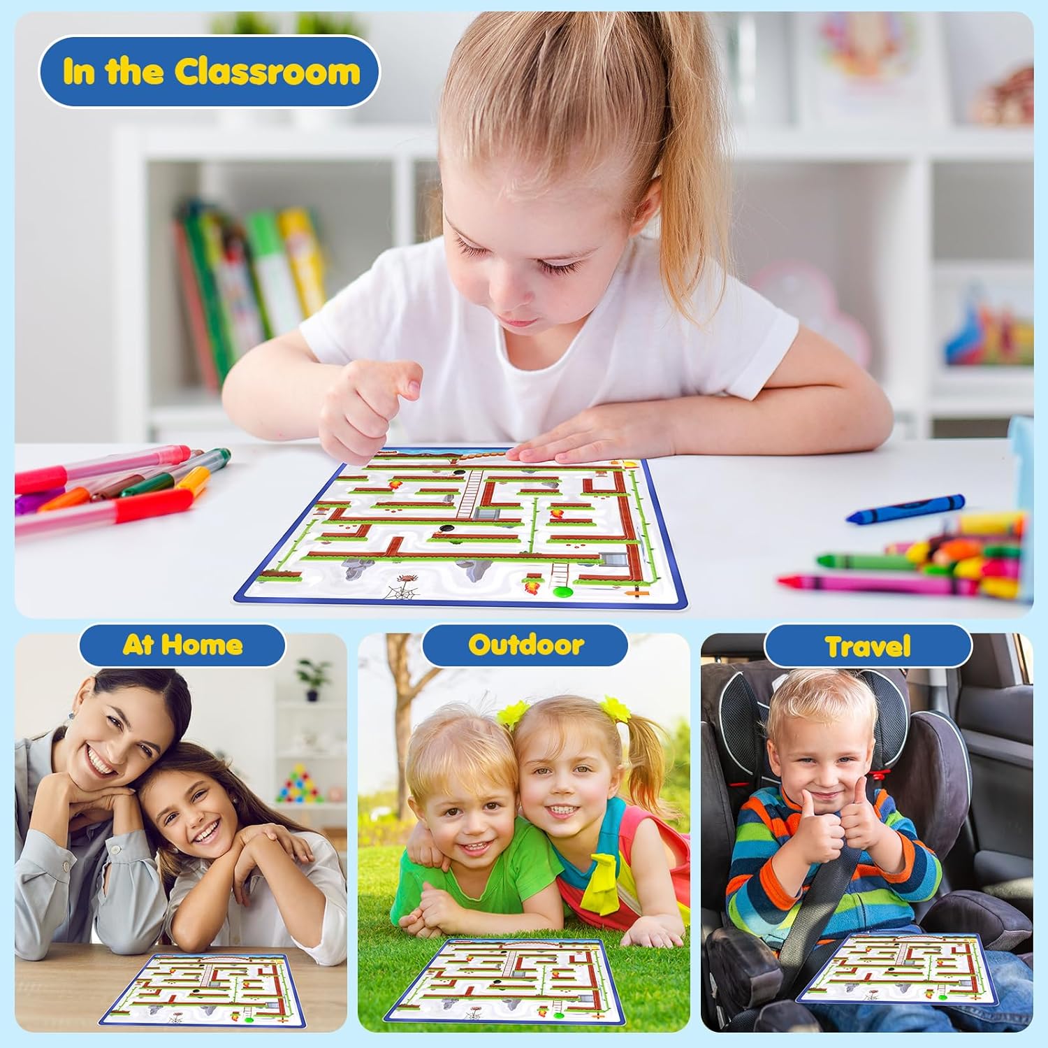 - [Sensory Marble Maze] Discover the delight of our gel-filled sensory maze mat with rubber marble beads. As you push the beads through the maze sensory toys, enjoy the soothing touch of the gel and the calming effect of the beads' movement. fidget sensory mazes are excellent for enhancing your child's focus and keeping them entertained. They make perfect classroom rewards and calm corner toys, ideal for children with anxiety, ADHD, and autism.