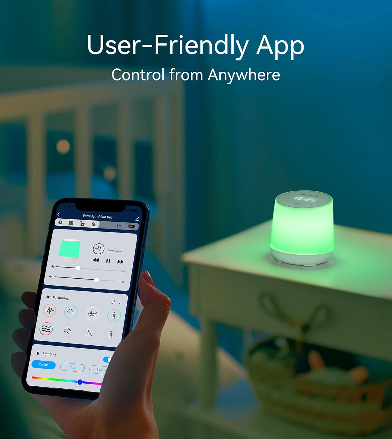 • Our latest, Pixie Pro smart sound machine is now Wi-Fi enabled(2.4GHz only), with dimmable clock & temperature display, ambient night light and even more features for dreamy sleep! Growing with your child – healthy sleep at every age.