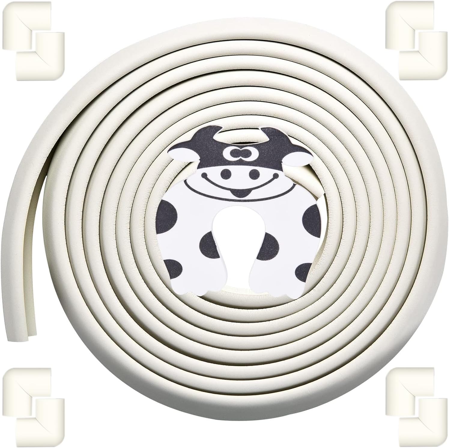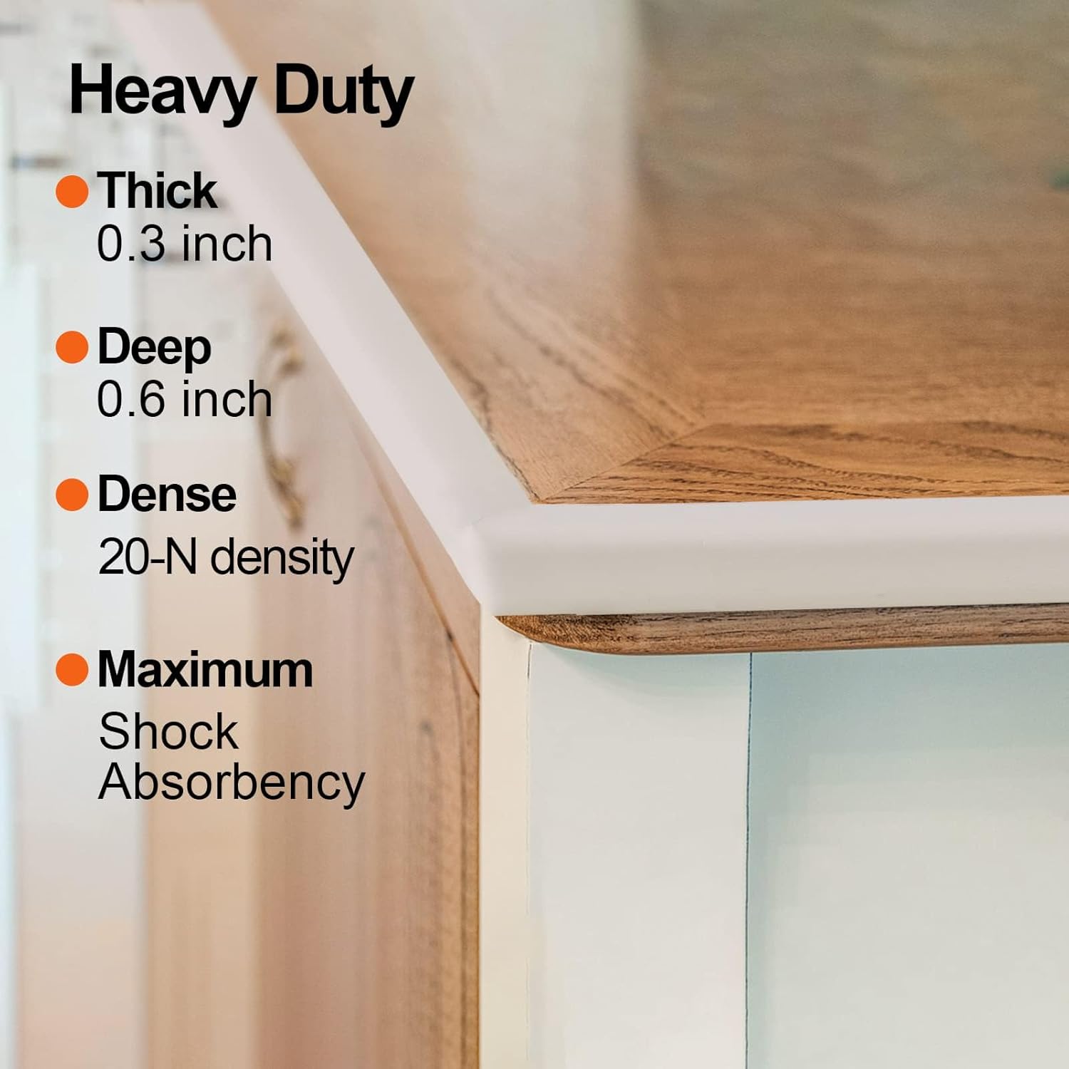 Edge Corner Protector Baby Proofing (Large 20ft Edge 8 Corners), Durable, High Density Rubber Foam, Fireplace Stair Furniture Safety Bumper Guard, 3M Double-Sided Tape, White