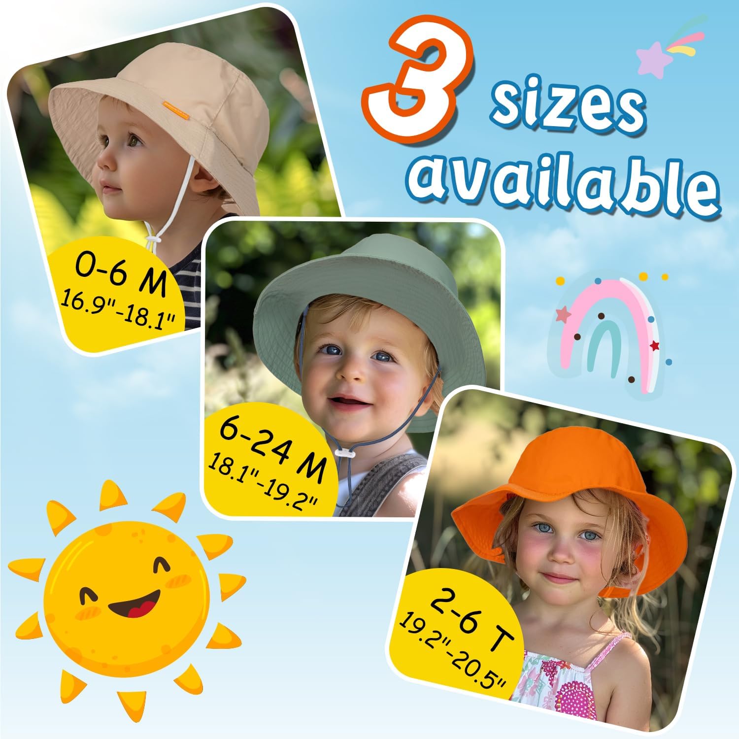 • 【PREMIUM MATERIAL】The baby sun hat is made of high quality polyester fabric, soft,quick-drying,skin friendly and breathable. The toddler sun hat with UPF 50+ UV sun protection keeps baby head cool and comfortable in hot summer.The baby bucket hat is convenient for your child to wash frequently and to match for different clothes