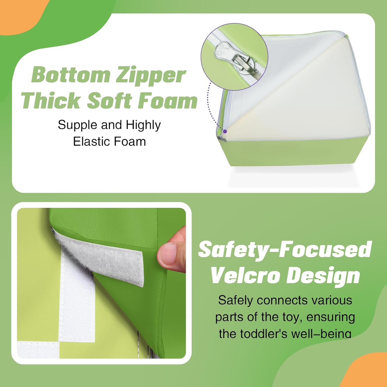 • 6-Piece Set: Baby climbing blocks consists of 1 apricot pink half-moon, 1 blue half-moon,1 orange stair, 1 green stair, 1 grass green square and 1 purple slide. This soft play equipment stimulates your child's imagination to create endless combinations of structures, allowing them to enjoy the fun of the toy as they climb up and down, stacking and swapping four different shapes