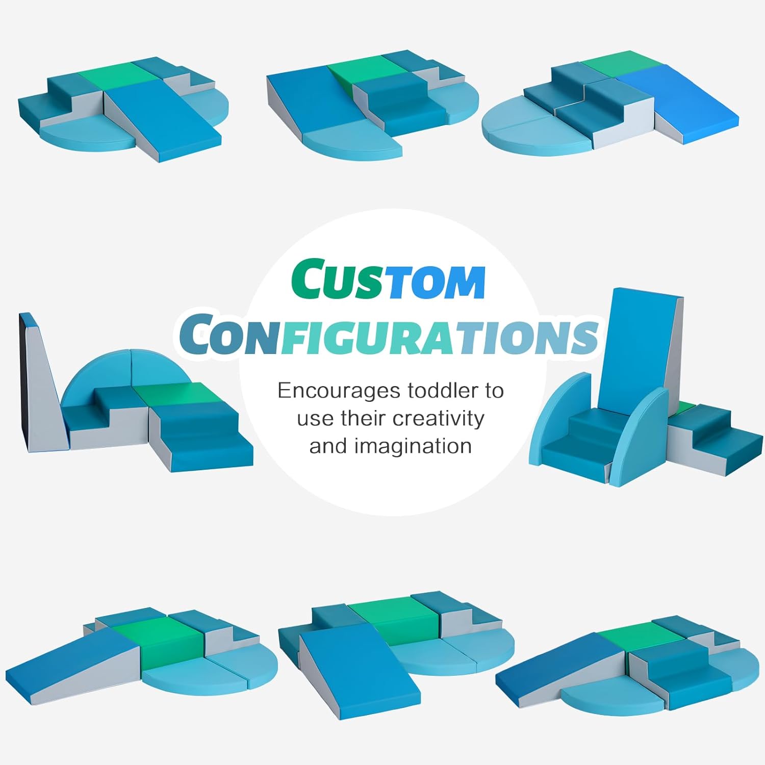 • 6-Piece Set: Baby climbing blocks consists of 2 dark green stairs, 2 sky blue half-moon, 1 green square and 1 navy slide. This soft play equipment stimulates your child's imagination to create endless combinations of structures, allowing them to enjoy the fun of the toy as they climb up and down, stacking and swapping four different shapes